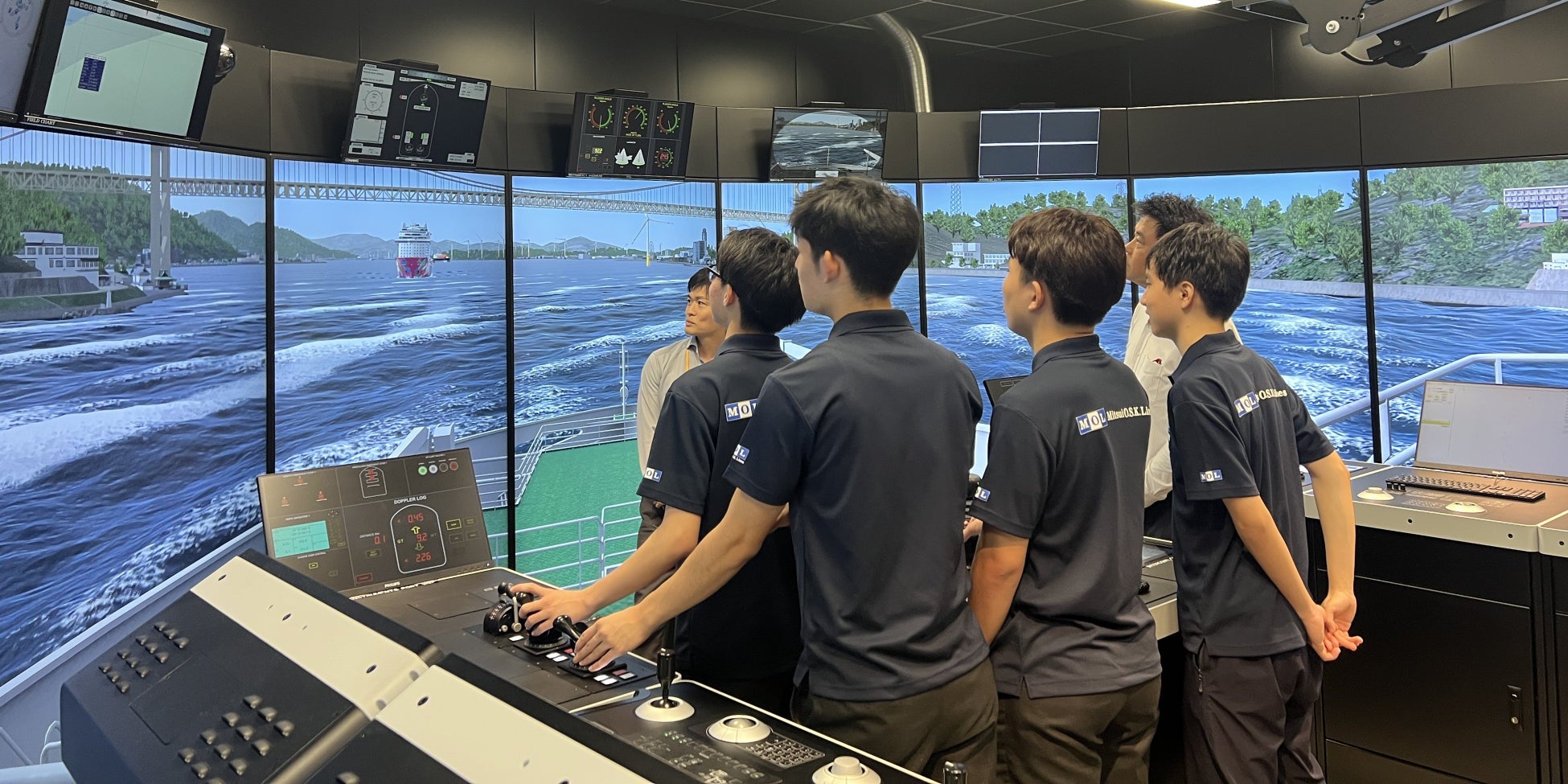 成果報告とともに、安全運航支援センターを見学・船舶操縦シミュレーターを体験しました。