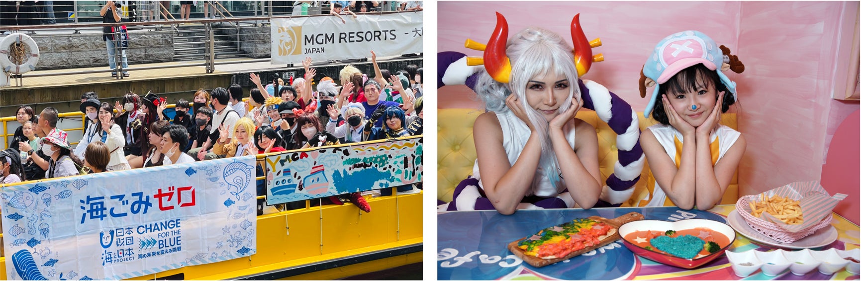 なんばの街中でごみ拾いを行ったコスプレイヤー達は、なんばリバーウォークを中心に撮影会を行ったり、「とんぼりリバークルーズ」に乗船したりして、なんばでの街歩きを満喫。また、今回のイベントに際し「コスプレde海ごみゼロまち歩き協力店舗」としてコスプレのまま入店・撮影の許可をくださったお店にて撮影会を楽しむ様子も見られました。
