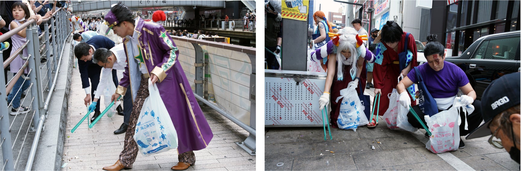 大阪なんばの街中を約200名の企業やコスプレイヤーたちがごみ拾い