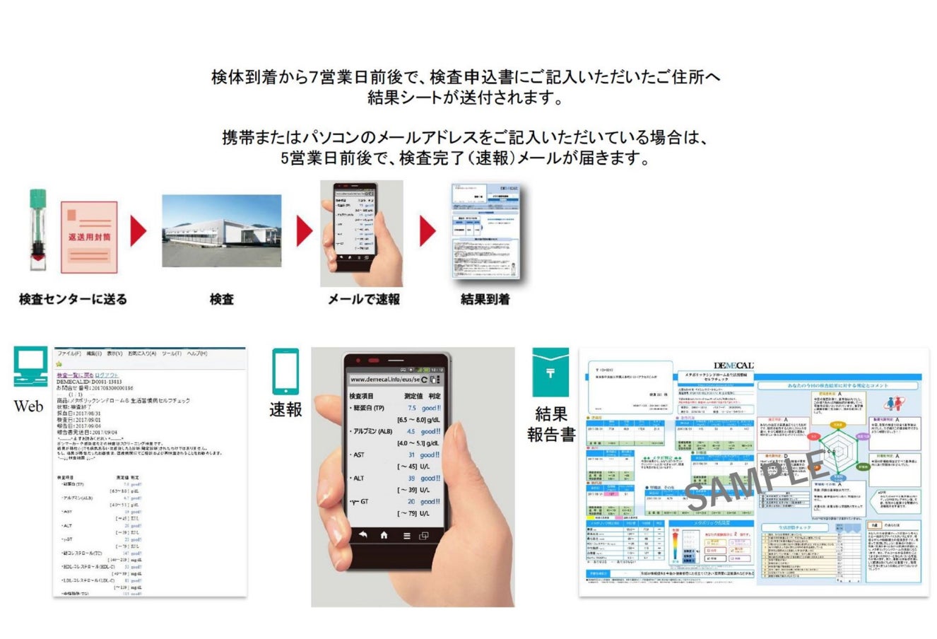 本サービスは企業や各種団体、個人向けに令和4年2月8日より提供が開始されております。希望される団体・企業及び個人は、リージャー社の代理店より検査キットを購入することで利用が可能なサービスです。自宅等で採血キットを用いて指先から少量の血液を自身で採取し、採取した血液サンプルを専門の検査センターへ郵送します。血液サンプルが検査センターに到着してから約1週間で、利用者に対してメールにて結果が報告されます。