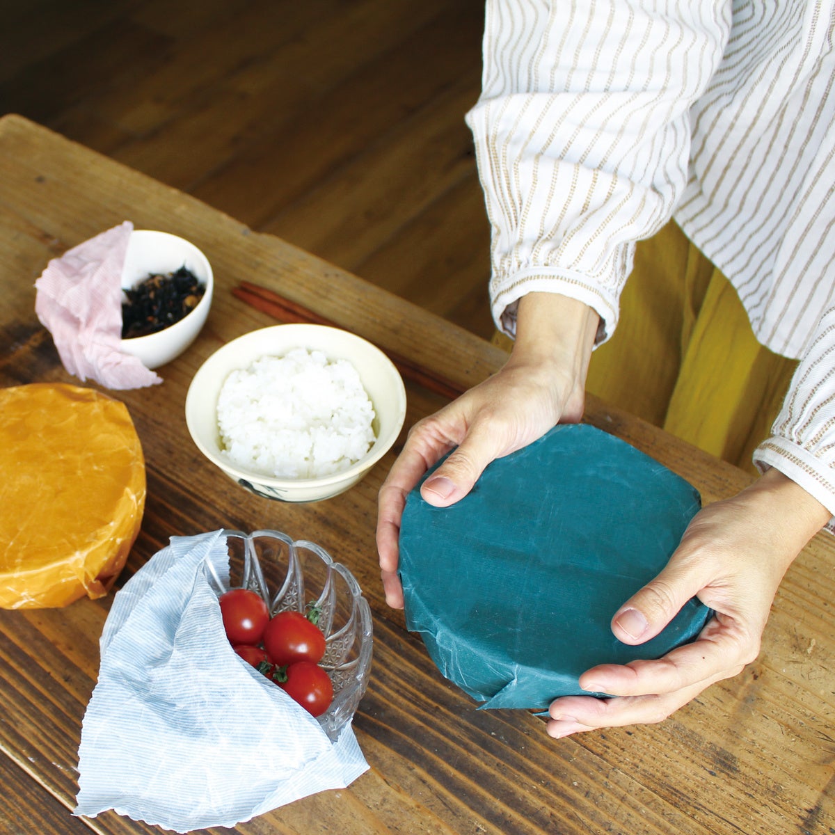 「布でつくる みつろうラップ」は、布地に”みつろう”を染み込ませた食品用ラップを自分で作るセットです。カンタンに作ることができる”みつろうラップ”は、かわいい柄・カラーで繰り返し楽しく使えて、地球にもやさしい”節約&エコ”という実用的なラップで、様々なシーンで活躍します。