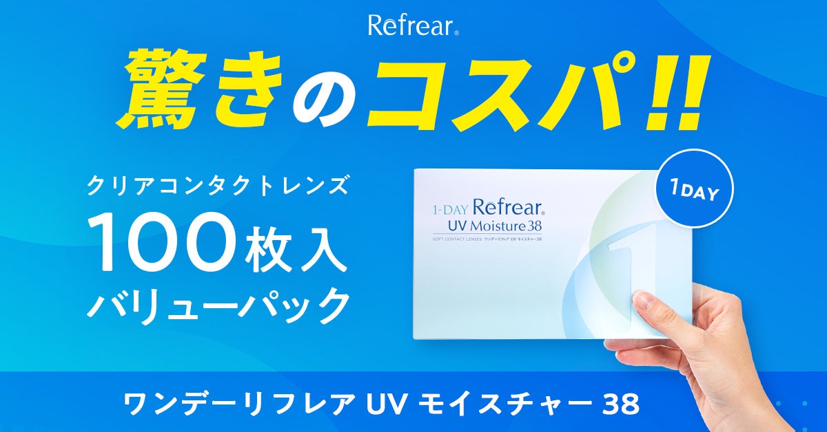 累計出荷数2億8千万枚を突破したコンタクトレンズブランドRefrear(リフレア)の「1-DAY Refrear UV Moisture38」大容量100枚入りが一般発売開始!!