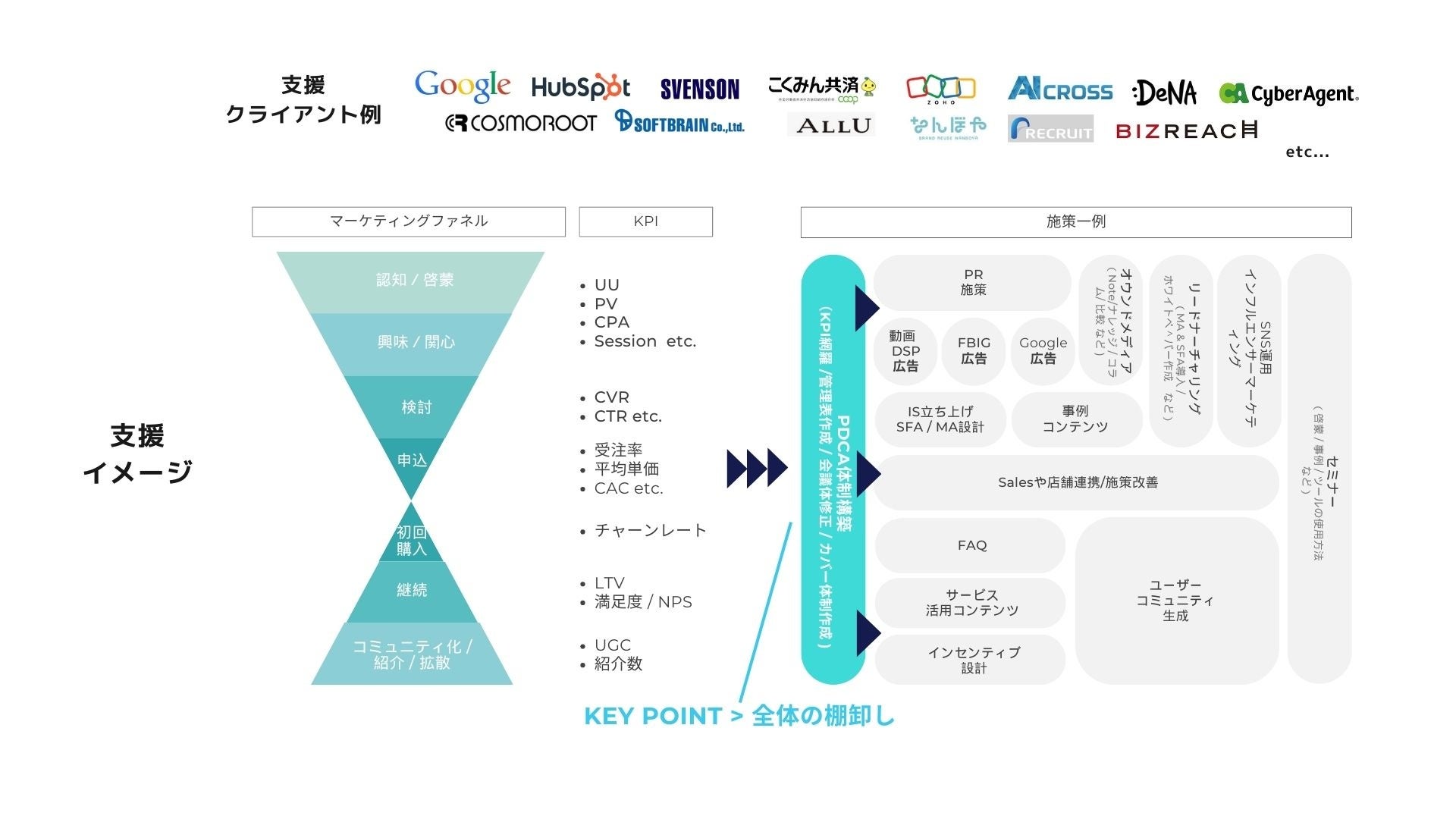 当社はマーケティング・セールス領域において、フロントを一元化して複数領域の一気通貫支援を行ってきました。