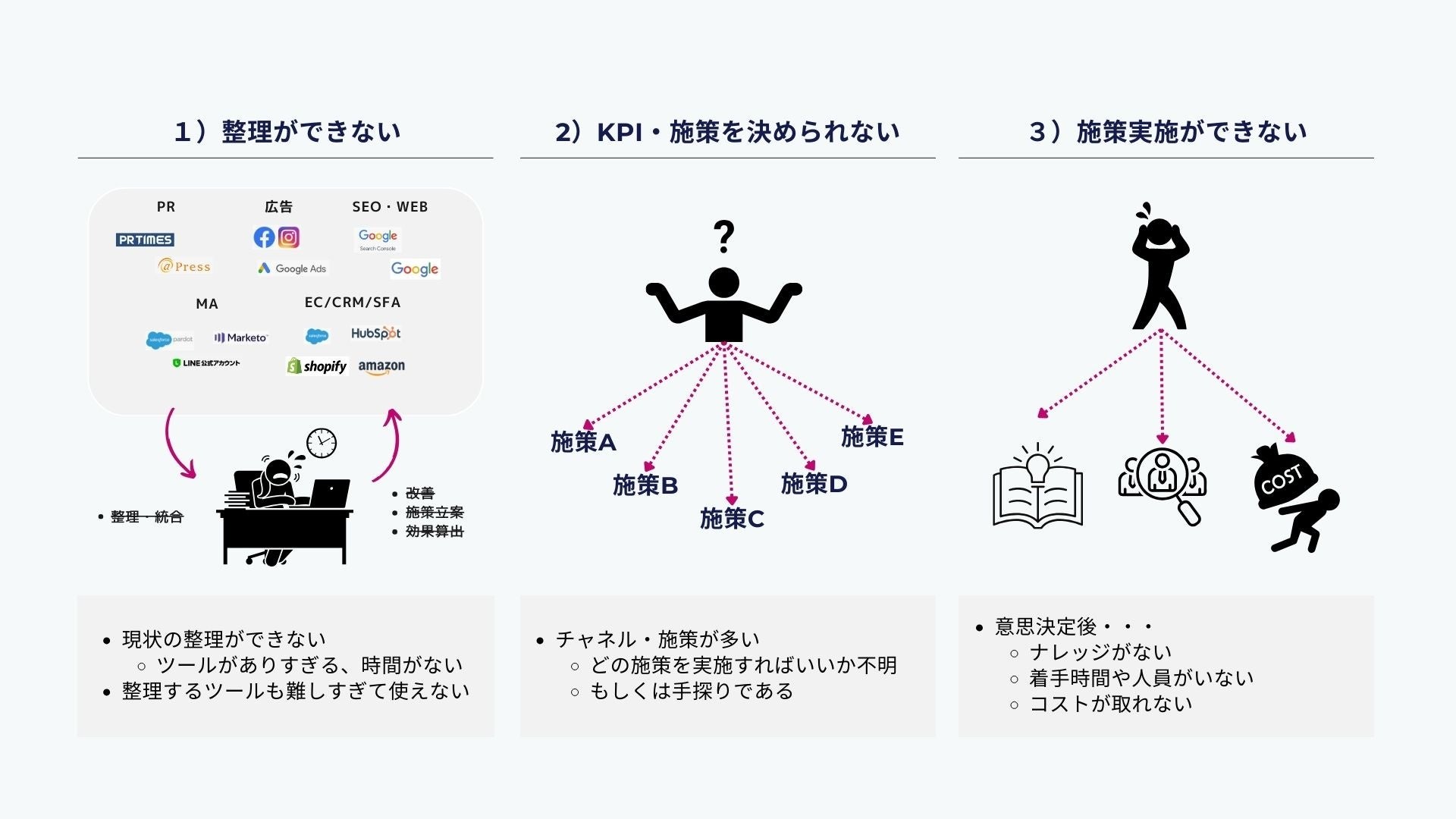 チャネル・施策が多くどの施策を実施すればいいか不明・手探りである