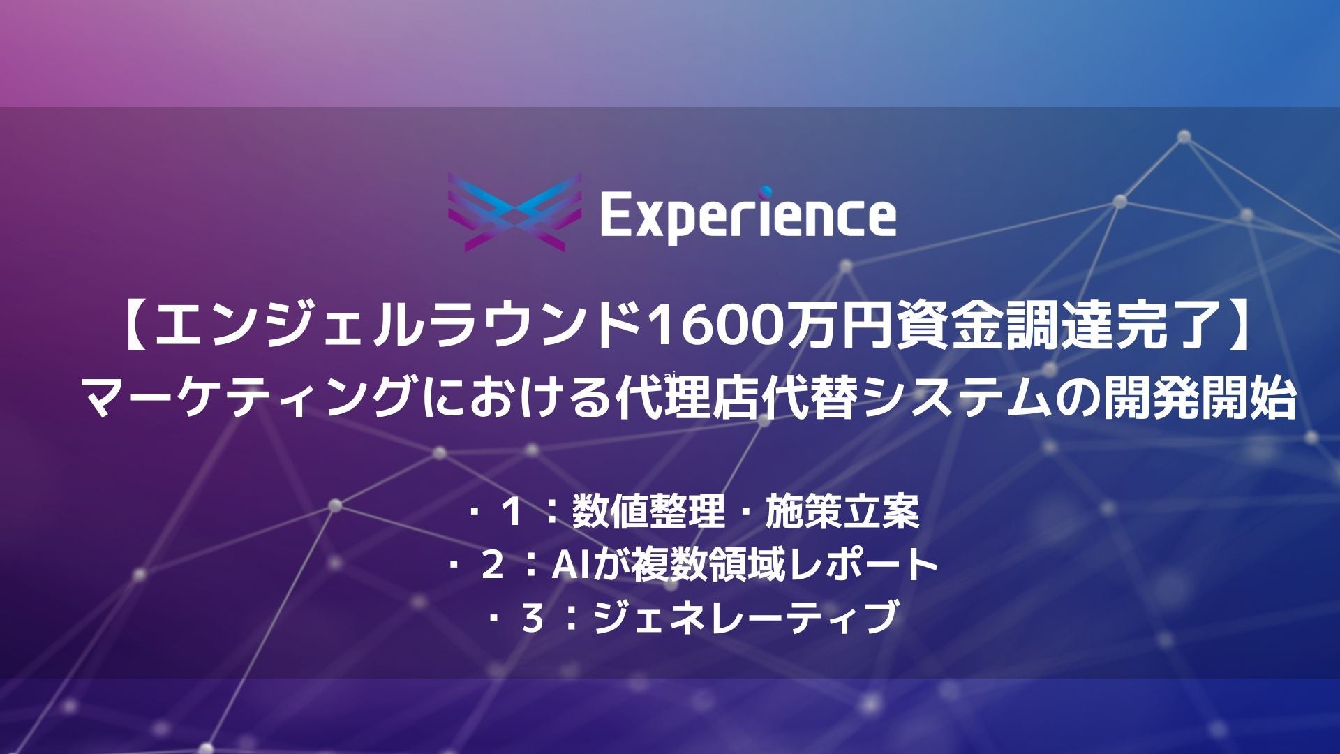 ㈱ Experienceがエンジェルラウンド1600万円を調達 - マーケティングの数値整理・施策立案・レポーティング・施策の生成を一気通貫で行う広告代理店代替システムの開発を開始