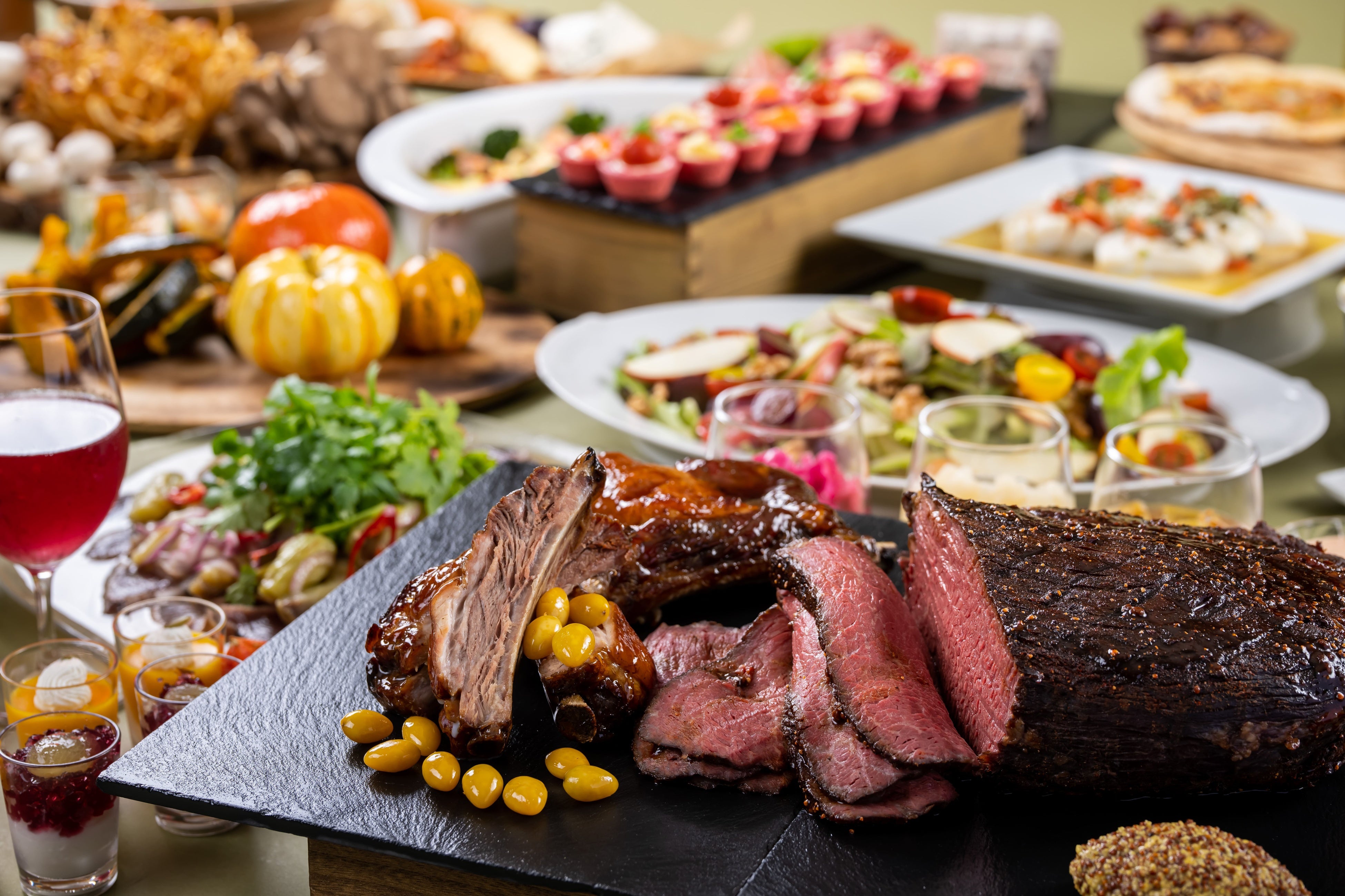 長野県で盛んに栽培が行われているりんごやぶどう、かぼちゃやきのこなど豊富な秋の味覚がつまったオータムブッフェ。収穫祭をイメージしたブッフェラインには「信州産キノコとポルチーニのラザニア」、「ガーリックとローズマリーのパンプキンロースト」をはじめ、心まで温まる郷土料理「鯖とタケノコの味噌汁」、「信州産キノコとゴボウの豚汁」。定番の「炊き込みご飯」に「信州産豚スペアリブと銀杏」など日替わりでご用意します。