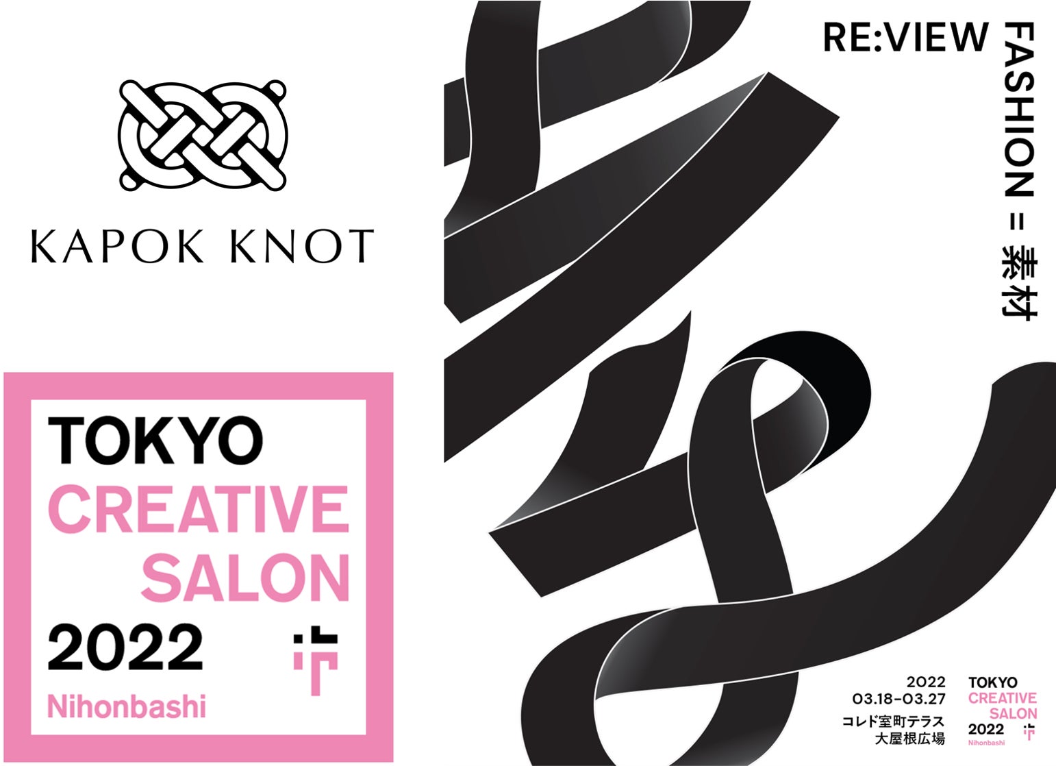 「Farm to Fashion」を掲げ、農園からこころよい暮らしを届ける木の実由来のファッションブランド「KAPOK KNOT(カポックノット)」(運営:KAPOK JAPAN株式会社)のディレクター、満汐 国明が、国内最大級のファッション・アートイベント「東京クリエイティブサロン2022」の展示物日本橋「A_BOX」のデザインを担当いたしました。3月18日(金)から3月27日(日)までの10日間、コレド室町テラス大屋根広場他で展示いたします。本イベントは、『RE:VIEW 日本橋を再考察し、再定義する。』をテーマに、日本橋の見えざる新たな価値をアートなどの展示を通して表現するイベントです。