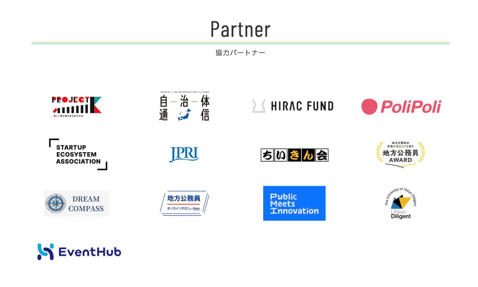 当日は、下記のオフィシャルパートナーに4つのグループに分かれていただき、登壇者のピッチをご覧いただきます。