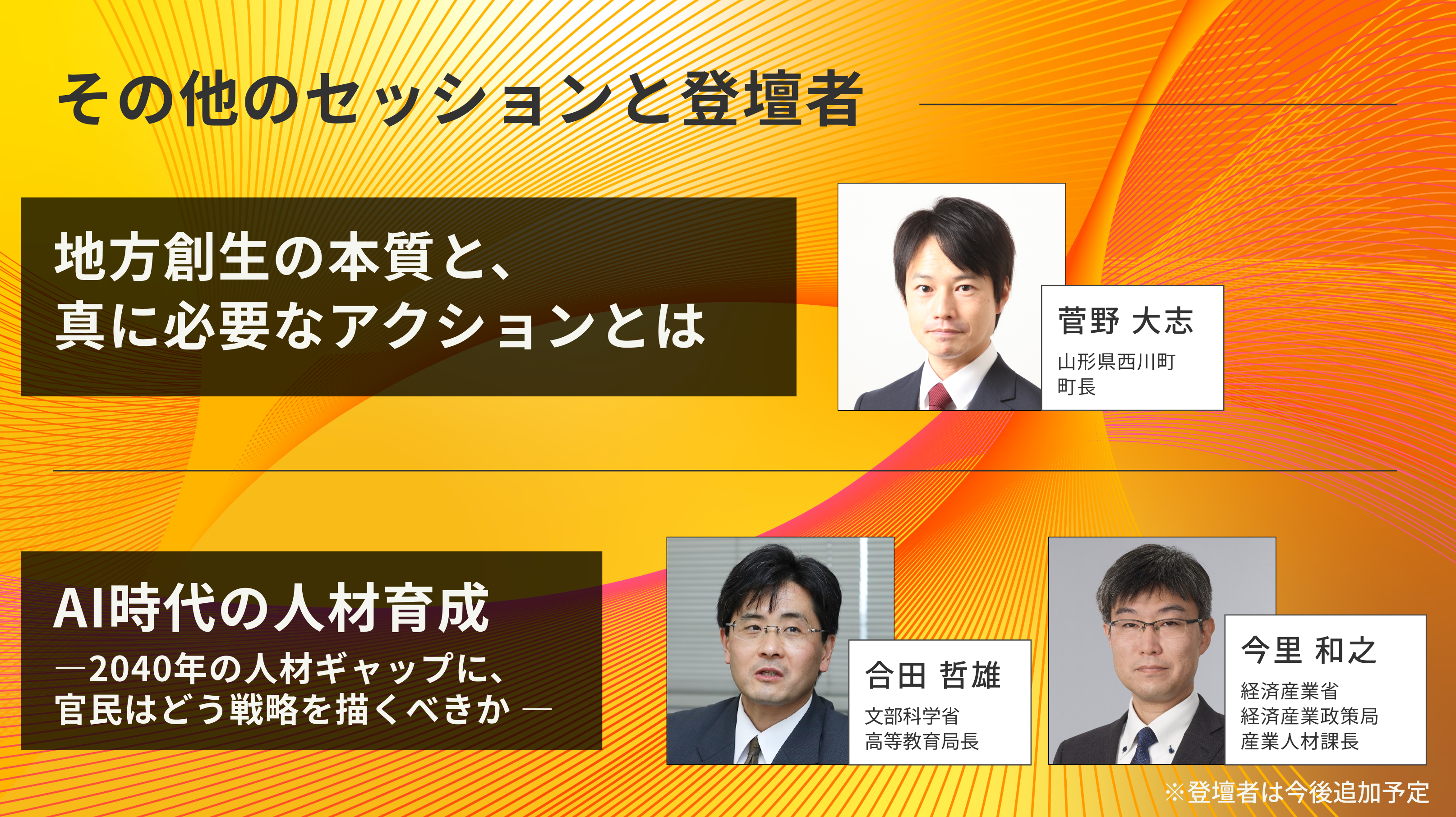 ※他のセッションや登壇者も決定次第、公式サイトにて順次発表いたします。