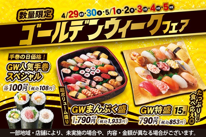 小僧寿しでは、お得感満載のゴールデンな7日間!「ゴールデンウィークフェア」を開催!!