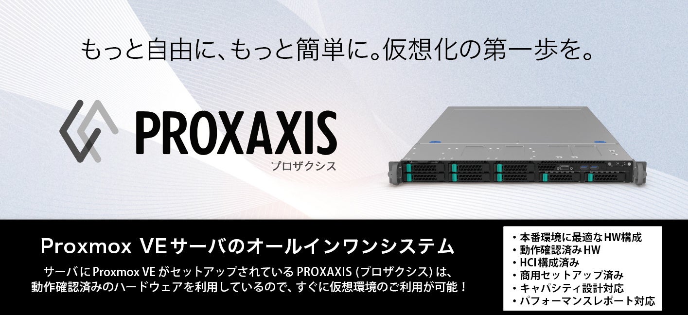 株式会社アクシス(本社:東京都中野区、代表取締役:宮腰行生、以下「アクシス」)は、仮想化基盤ソリューション「Proxmox Virtual Environment(Proxmox VE)」をプレインストールした新しいハードウェアソリューション「PROXAXIS(プロザクシス)」を発表しました。