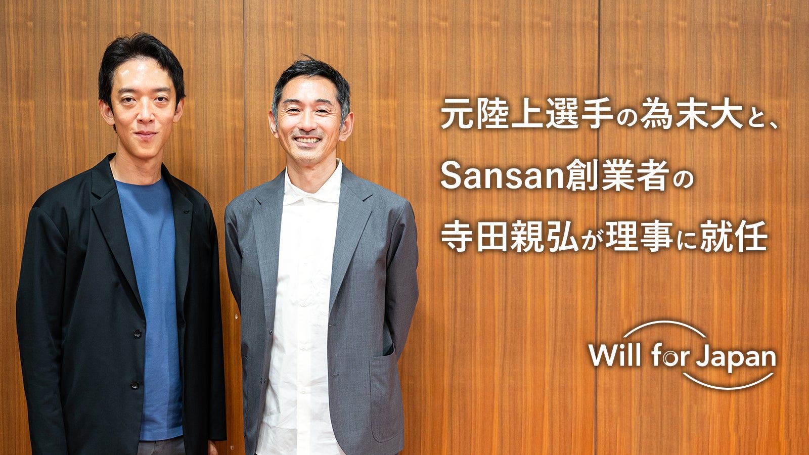 今回の理事就任の狙いは、広報発信力の強化と、サービス創発力の強化です。為末大は、陸上選手を引退後、執筆活動や自身の活動・プロジェクトを通して、自分の思考を社会に発信し、多くの賛同を得るなど、力強い言語化能力と情報発信力を有しています。それを基点とした広報発信の役割を期待します。また、寺田親弘には、Sansan株式会社や神山まるごと高専といったそれまで社会になかったサービスや仕組みを生み出してきたサービス創発の力を活かし、当協会の資金調達や新たな事業の創発を期待します。