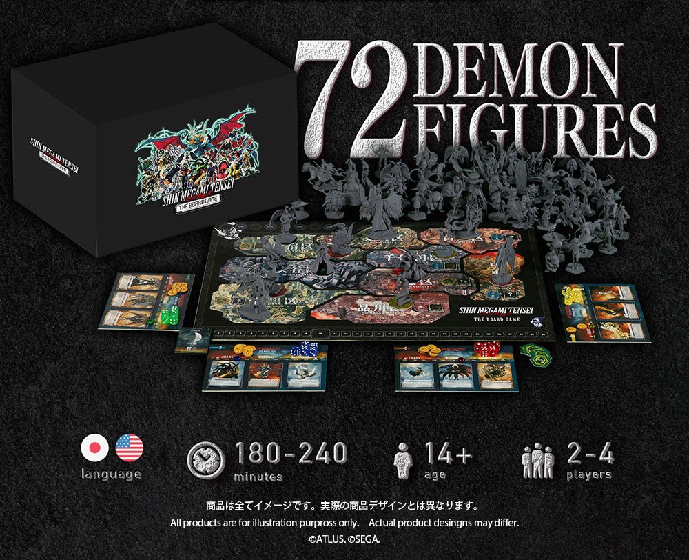 本作は「真・女神転生」シリーズの世界観をベースとして、総数72体に及ぶ精巧な悪魔フィギュアを含む豪華コンポーネントで贈る国内外有数の超重量級ボードゲームです。
