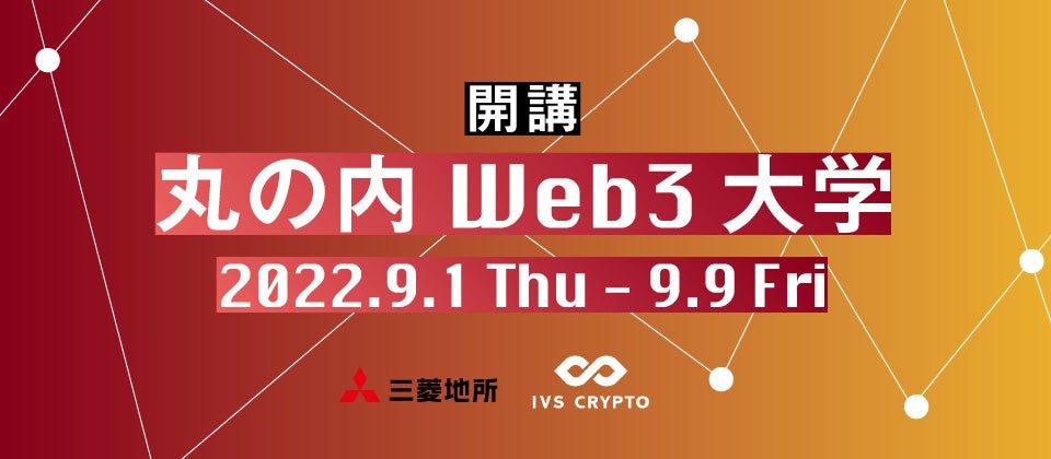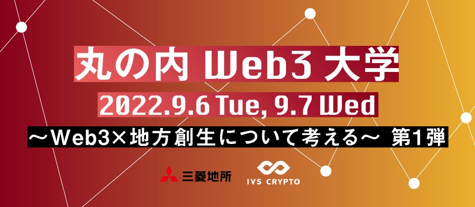 三菱地所株式会社はIVS株式会社(本社:東京都港区/代表取締役 島川 敏明)協力のもと「丸の内Web3大学Supported by IVS Crypto~Web3×地方創生について考える~第1弾」をテーマにイベントを開催致します。本イベントは、Web3領域に興味を持つ企業の新規事業担当者やスタートアップ起業家におすすめのイベントになります。セッション前半では、今さら聞けないWeb3の基礎情報から今後Web3を利用した実現可能な未来までスペシャルゲストの解説を通じて学ぶことが可能です。また、セッション後半ではWeb3×地方創生の取り組みについて、最新情報を知ることができます。