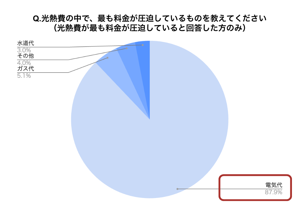87.9%が、光熱費の中でも「電気代」が圧迫していると回答