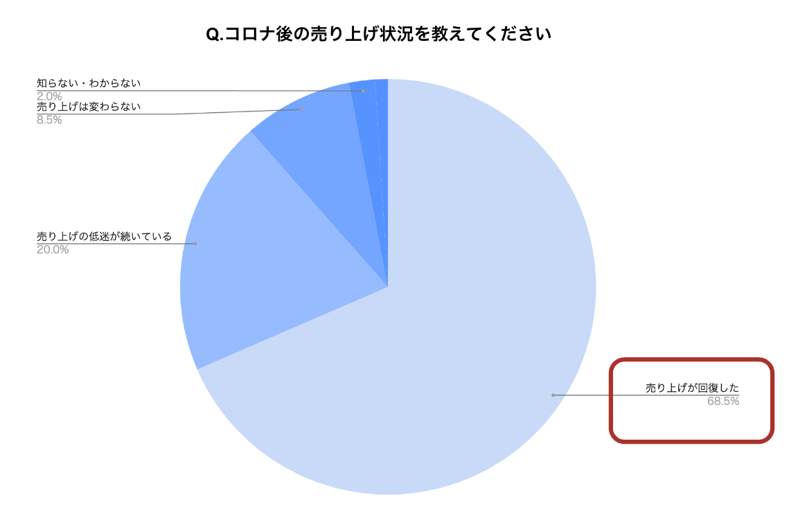 68.5%が「コロナ後に売り上げが回復した」と回答