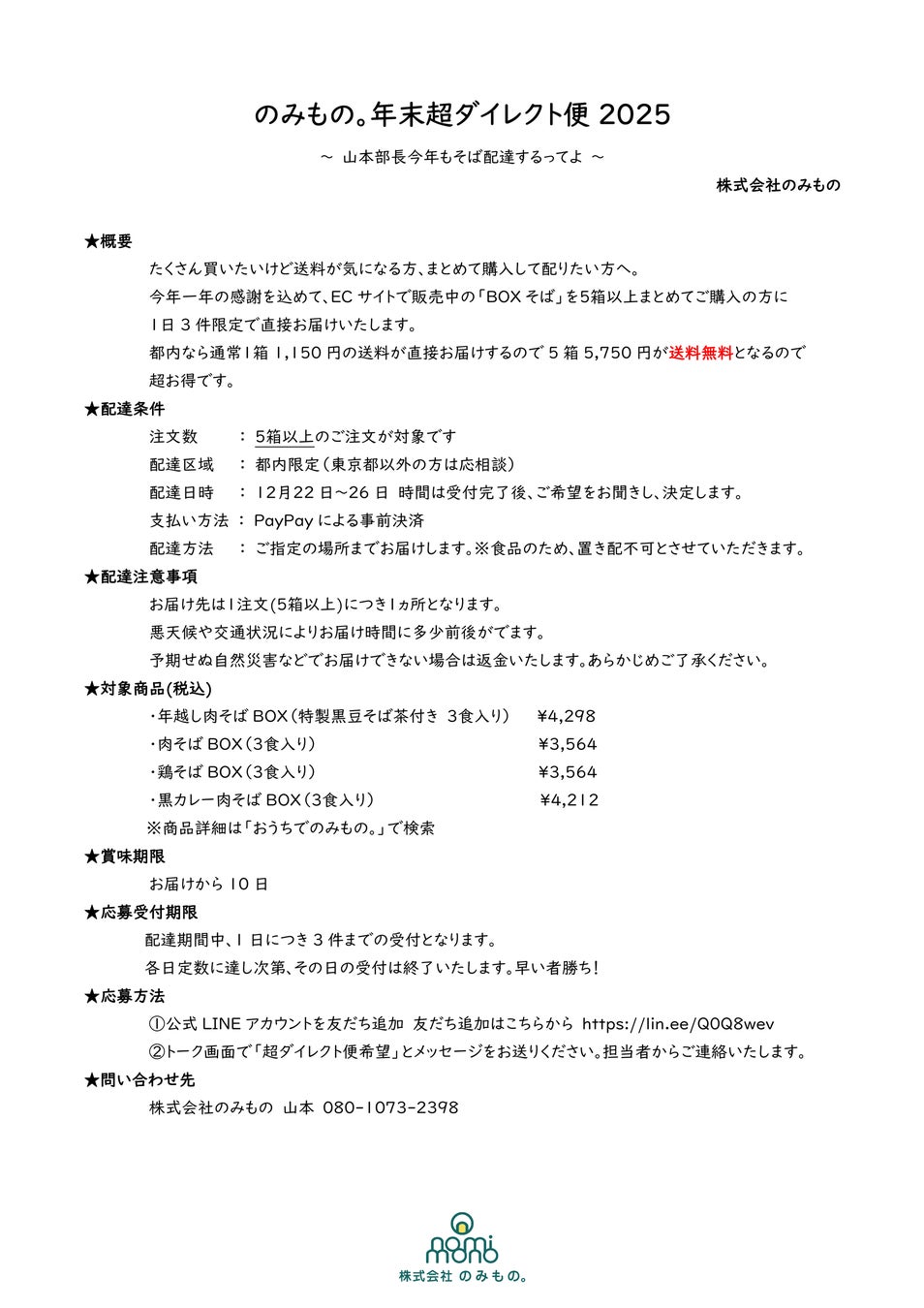③『山本部長、今年もそば配達するってよ』 のみもの。超ダイレクト便2025