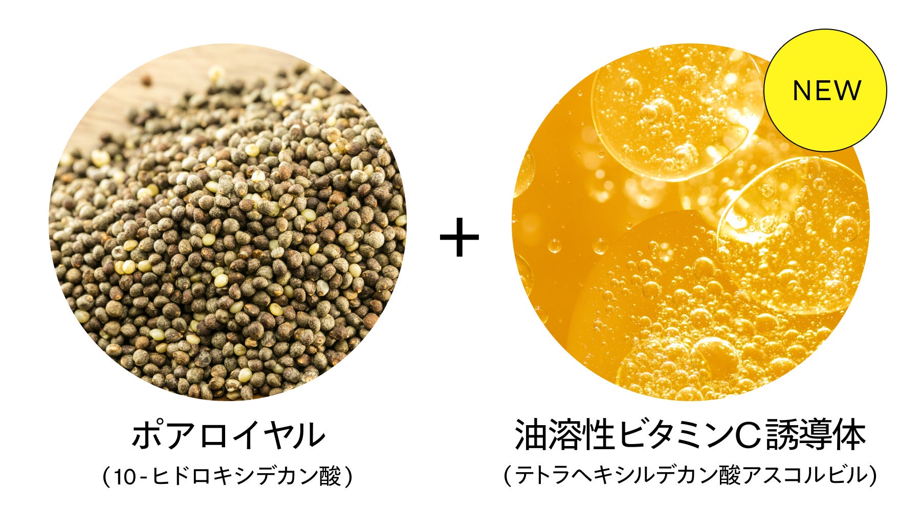 肌質を問わず悩みの筆頭となる「毛穴」に向き合う新処方。毛穴に詰まった皮脂汚れや角栓汚れを溶かしてオフするエゴマ種子由来のポアロイヤル*2とホホバ種子油に加え、今回新たに油溶性ビタミンC誘導体*3を配合。肌の皮脂と結合し長く留まることで安定的に効果を発揮します。