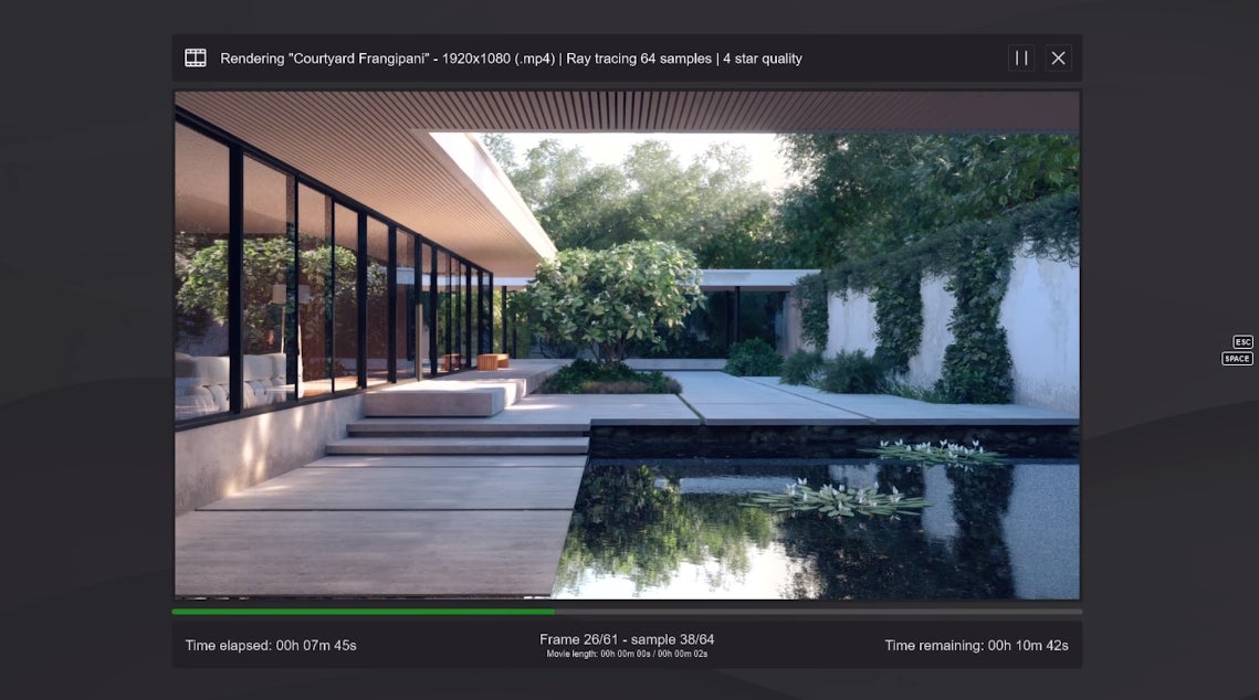 Lumion2024は、以前のバージョンと比較して、ビデオレンダリング速度が5倍になり、より迅速なプレゼンテーション作成が可能になります。