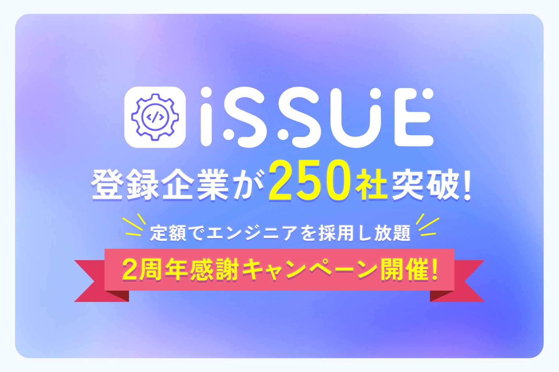 リリース2周年!登録企業250社突破!定額でエンジニアを採用し放題!エンジニアマッチングプラットフォームISSUE「2周年感謝キャンペーン」を開催します!