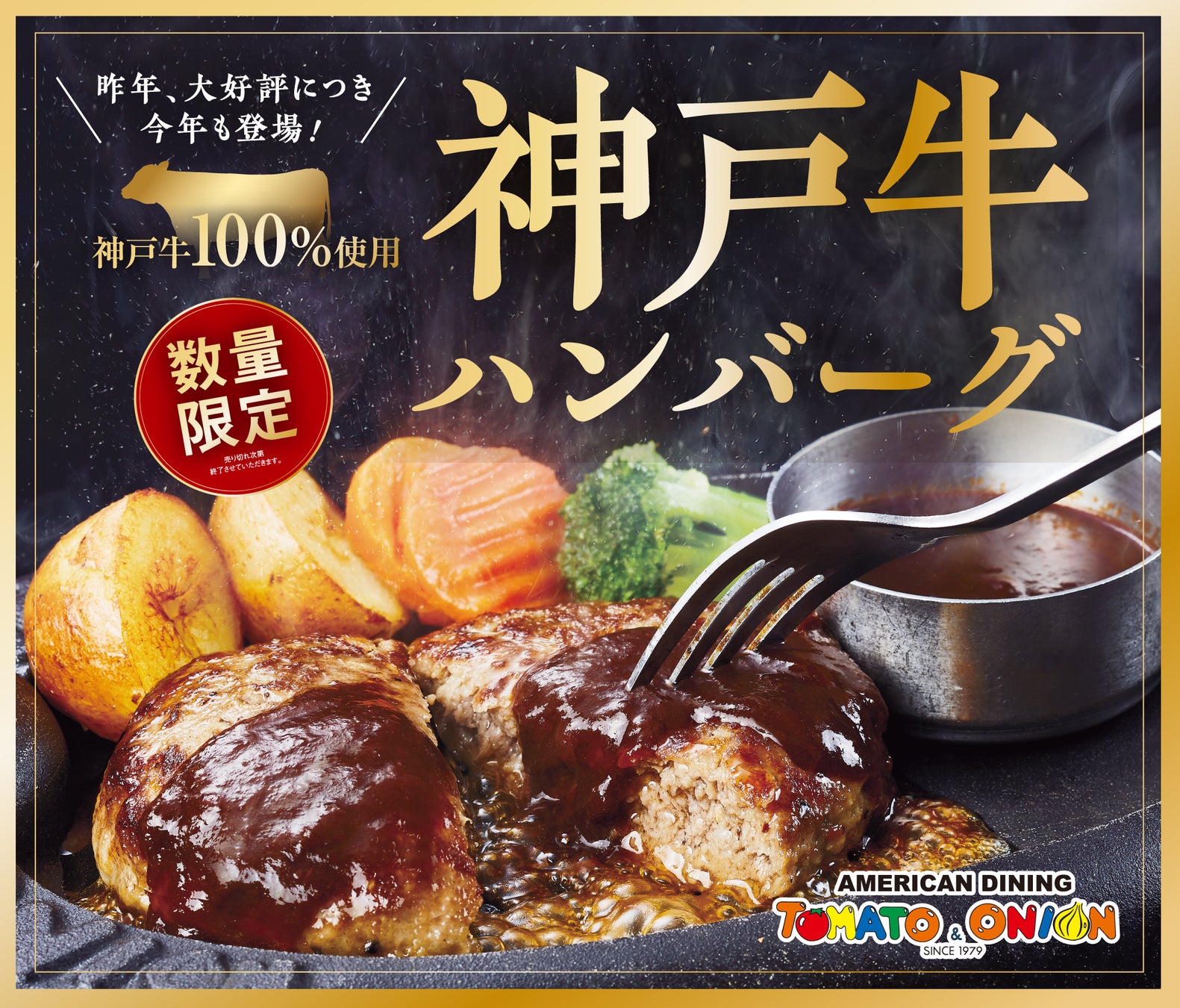 株式会社トマトアンドアソシエイツ(本社:兵庫県西宮市、代表取締役社長:小林 大二)が運営する、アメリカンダイニング「トマト&オニオン」では、2022年3月10日(木)から、神戸牛を100%使用した“神戸牛ハンバーグ”を数量限定で販売します。