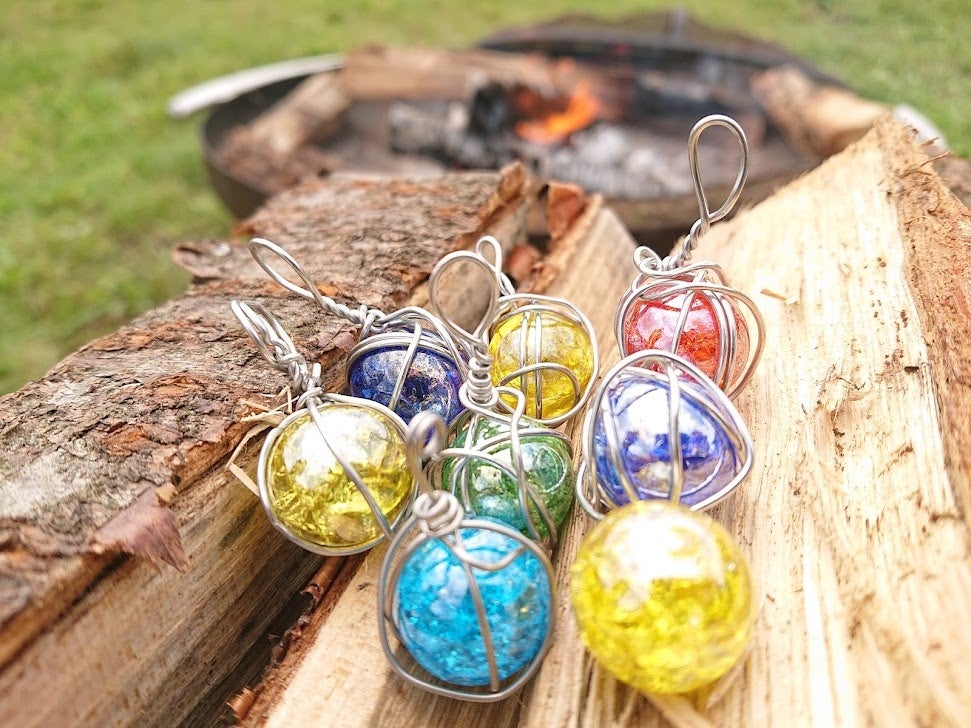炭で焼いたクラッシュビー玉のキーホルダー作り: 独特の風合いが楽しめる手作りキーホルダー