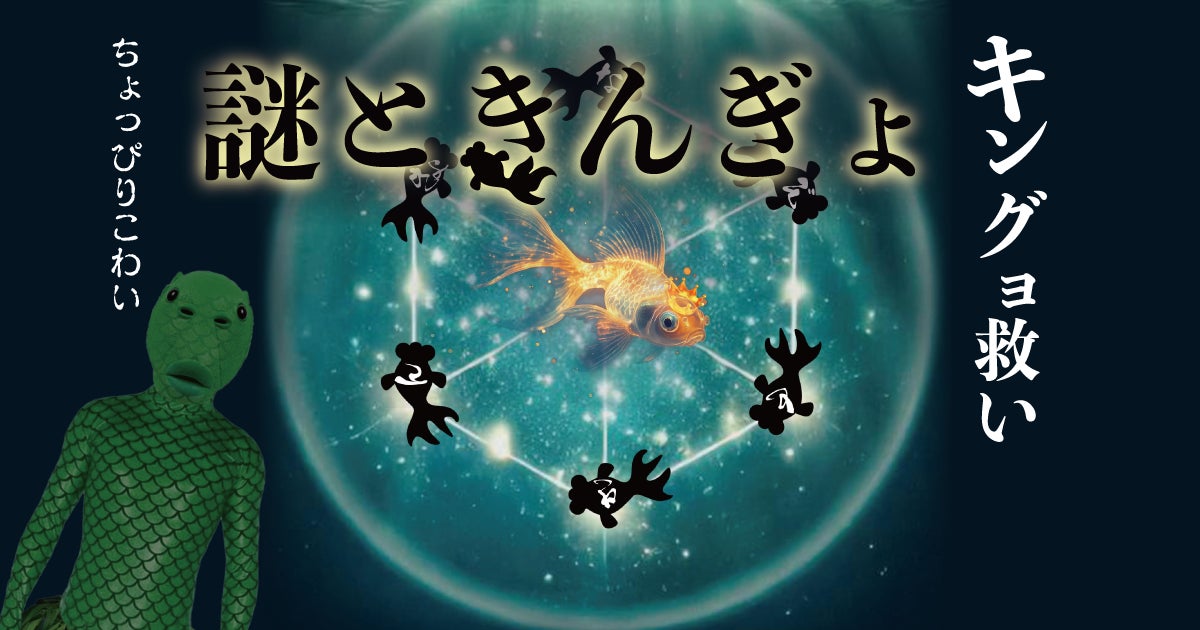 日本一の金魚水族館として知られる水中楽園アクアリウムでは、なぞときイベントとして「謎ときんぎょ」を初開催します。美しい金魚たちに囲まれながら、「ちょっぴりこわい」謎解きに挑戦できる新感覚のエンターテイメントです。黒金魚に書かれた呪文の謎を解き、金魚の王「キングョ」を魚餓鬼から守り抜こう!