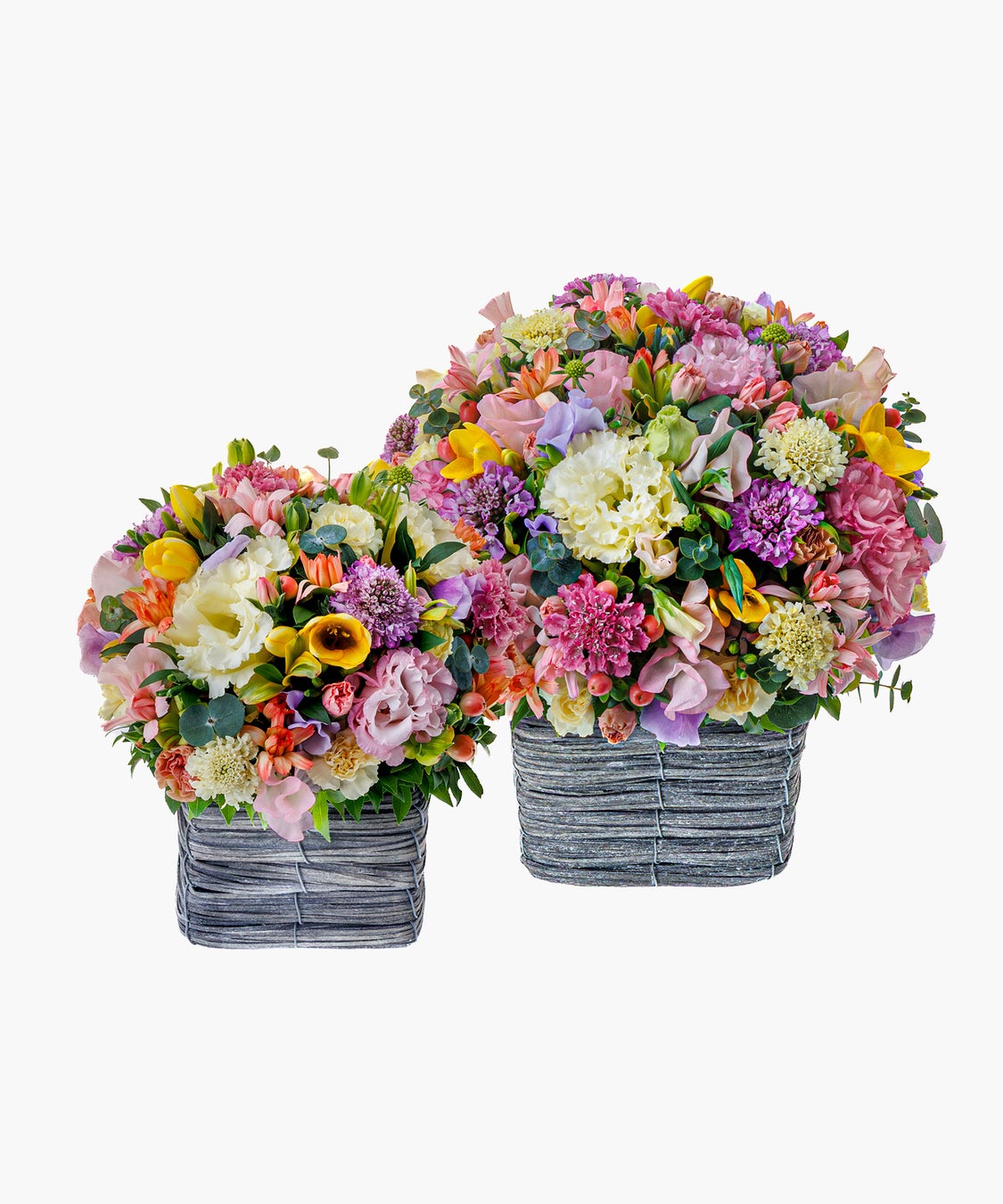 また、フレッシュフラワーアイテムでは、スイートピーやローズ、カーネーションなど、春ならではの花材を中心に、やさしい色合いから明るく瑞々しい表情まで幅広いアイテムを展開。定番のフラワーボックスやフラワーキューブに加え、ブーケやアレンジメントなど、シーンや空間に合わせて選べるラインナップとなっています。花々の質感や色の重なりを丁寧に生かしたデザインは、空間に春らしい空気と心地よい彩りをもたらします。