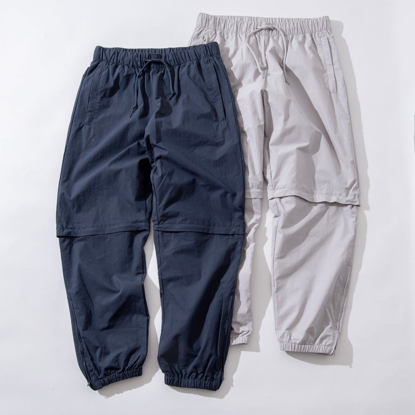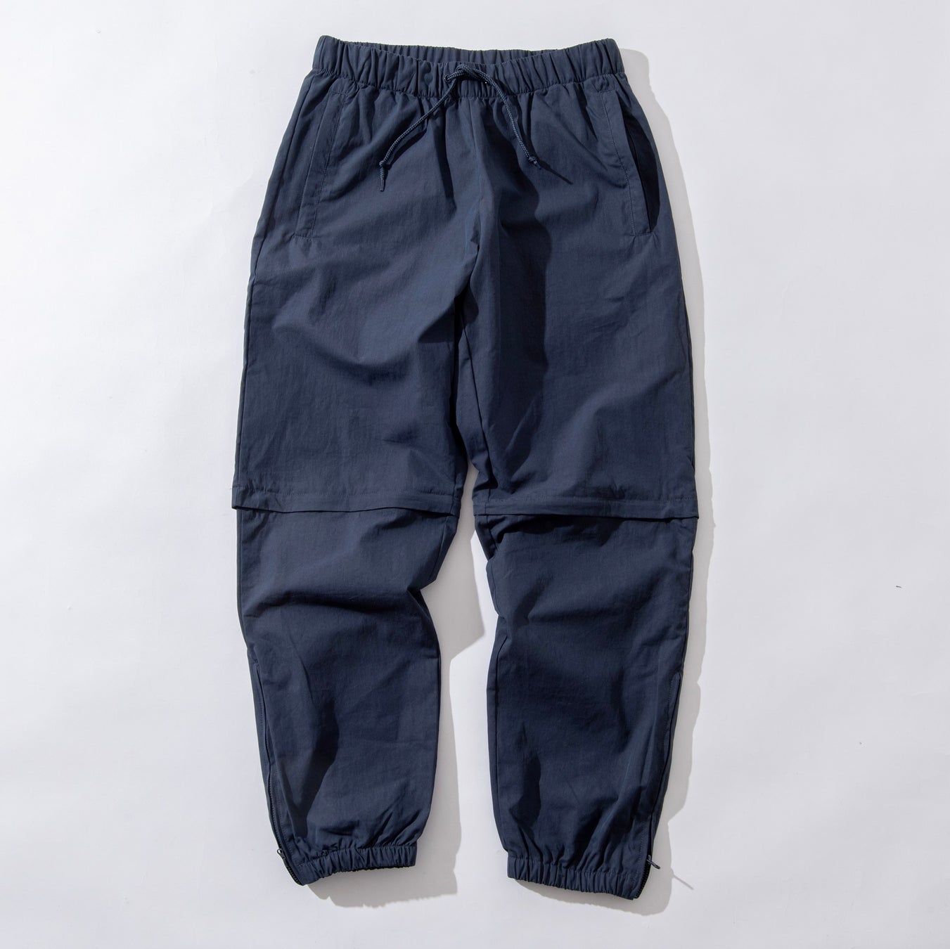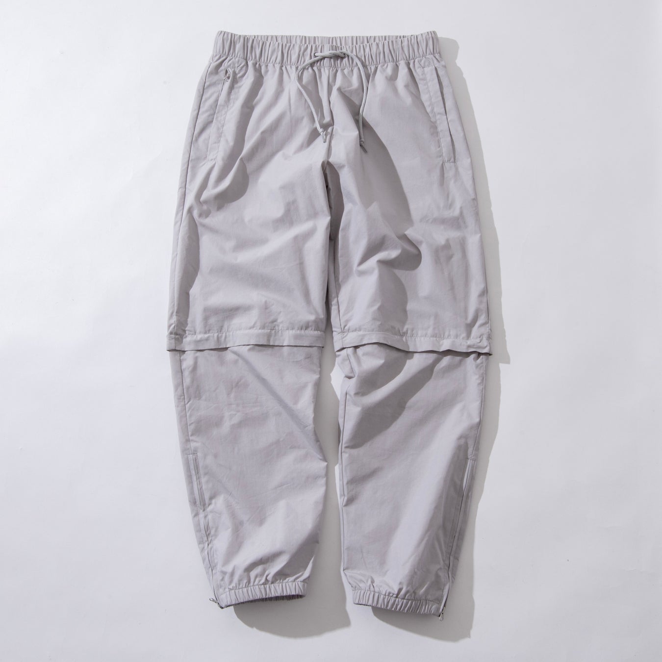 同素材のパンツは、ひざ下部分が取り外せるジップオフ仕様で、ロングパンツとしてもショーツとしても着用可能。裾にはジッパーを施し、靴に合わせてシルエットを調整できます。各ポケットにはジップを内蔵し、収納物を安全に保管できるのもポイントです。ジャケットとのセットアップで、統一感のあるあるスタイリングが楽しめます。