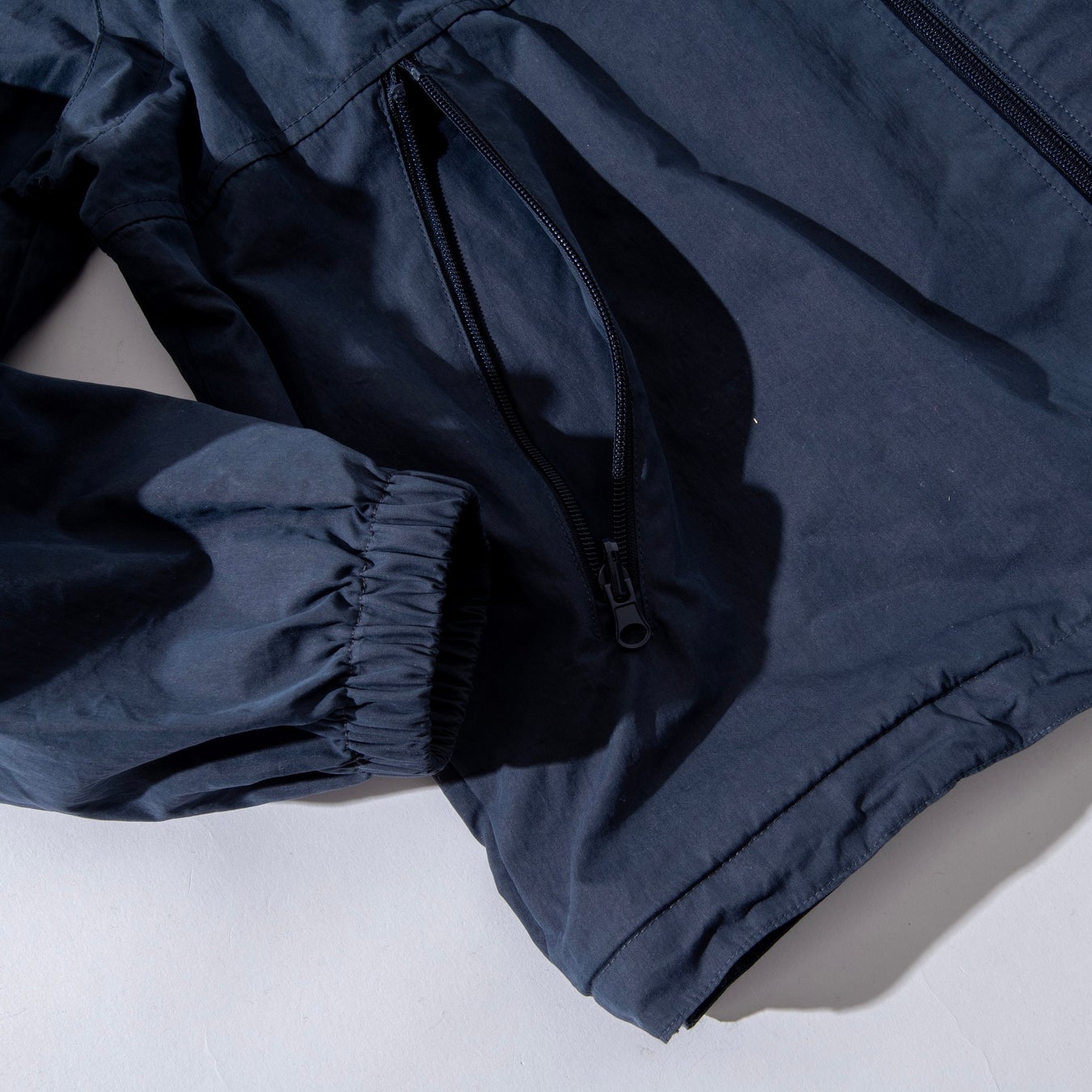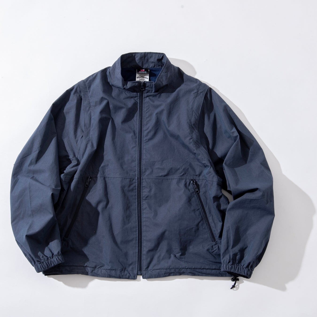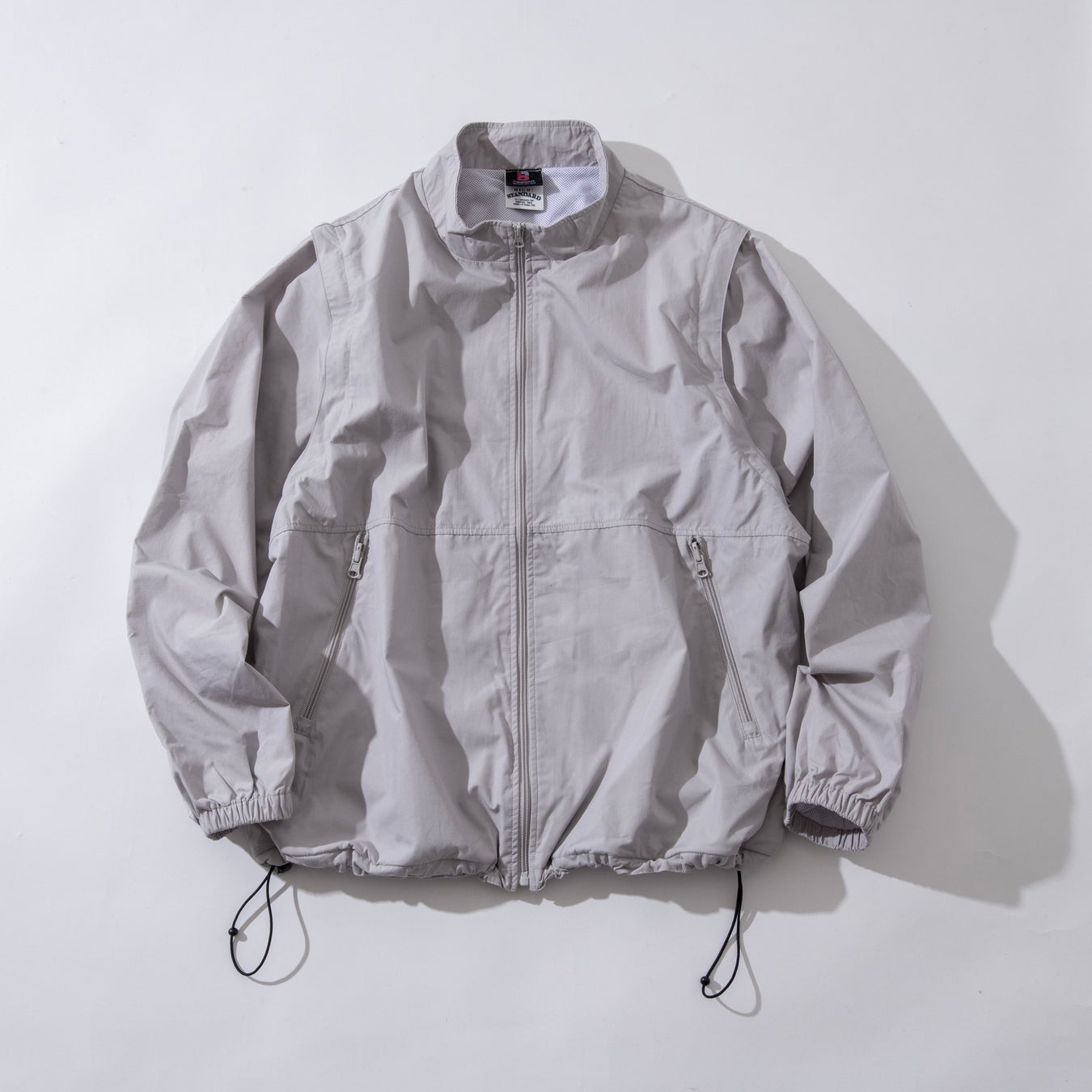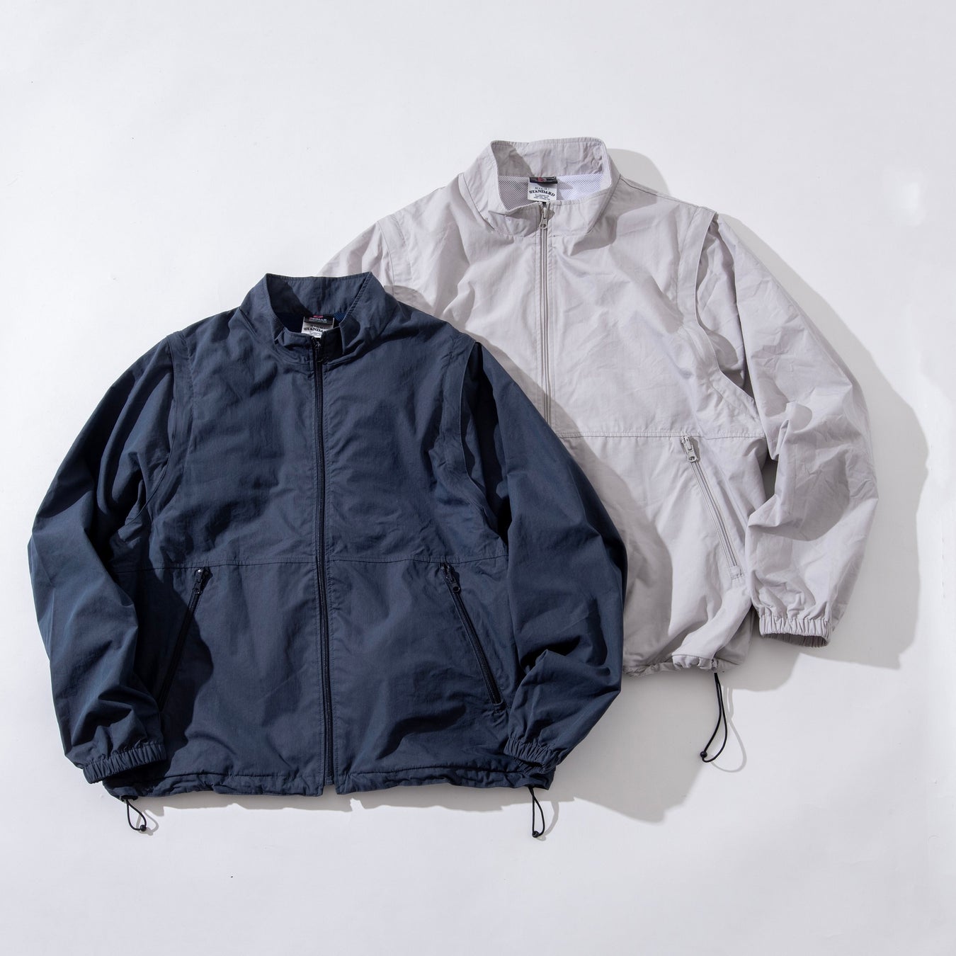 ジャケットは撥水性を備えたコットンタッチ素材を使用し、裏地には通気性の高いメッシュを採用。重ね着をしても快適な着心地を追求しました。袖が取り外せるコンバーチブル仕様により、ジャケットとしてもベストとしても着用可能な2WAYデザインが特徴です。ベストのシルエットにもこだわり、繰り返し試着を重ねてバランスを調整し完成させました。さらに、フロントポケットに収納可能なパッカブル仕様で、持ち運びに便利な設計となっています。