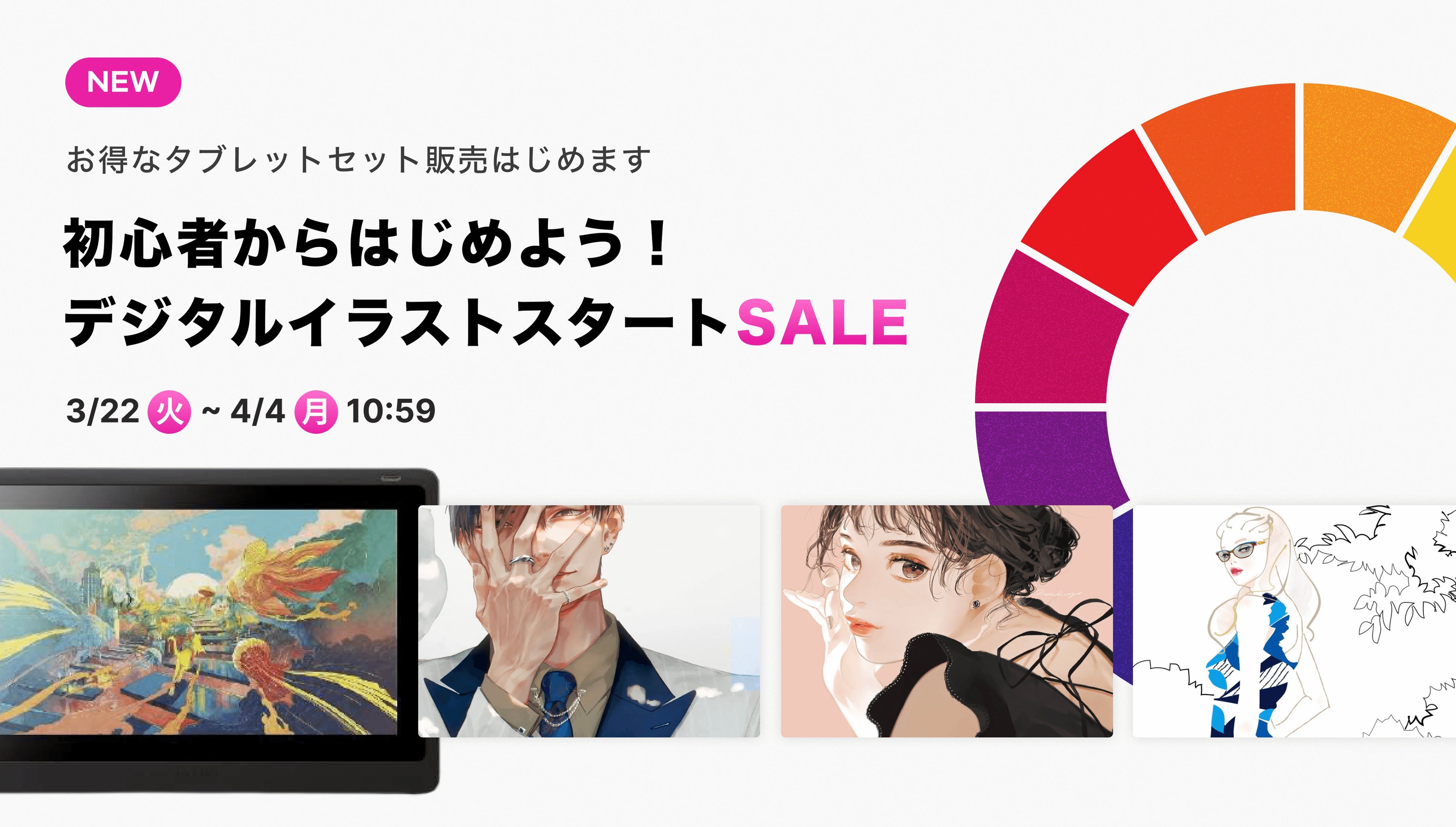 また、より多くの人がデジタルイラストに親しんでもらえるよう、2022年3月22日〜4月10日まで『初心者からはじめよう!デジタルイラストスタートSALE」を開催いたします。開講中デジタルイラストのクラスが25%オフにて購入できる他、wacom社製ペンタブレットがCLASS101特別価格※で購入できるなど、お得にデジタルイラストを始められます。※対象クラスとセットにて。