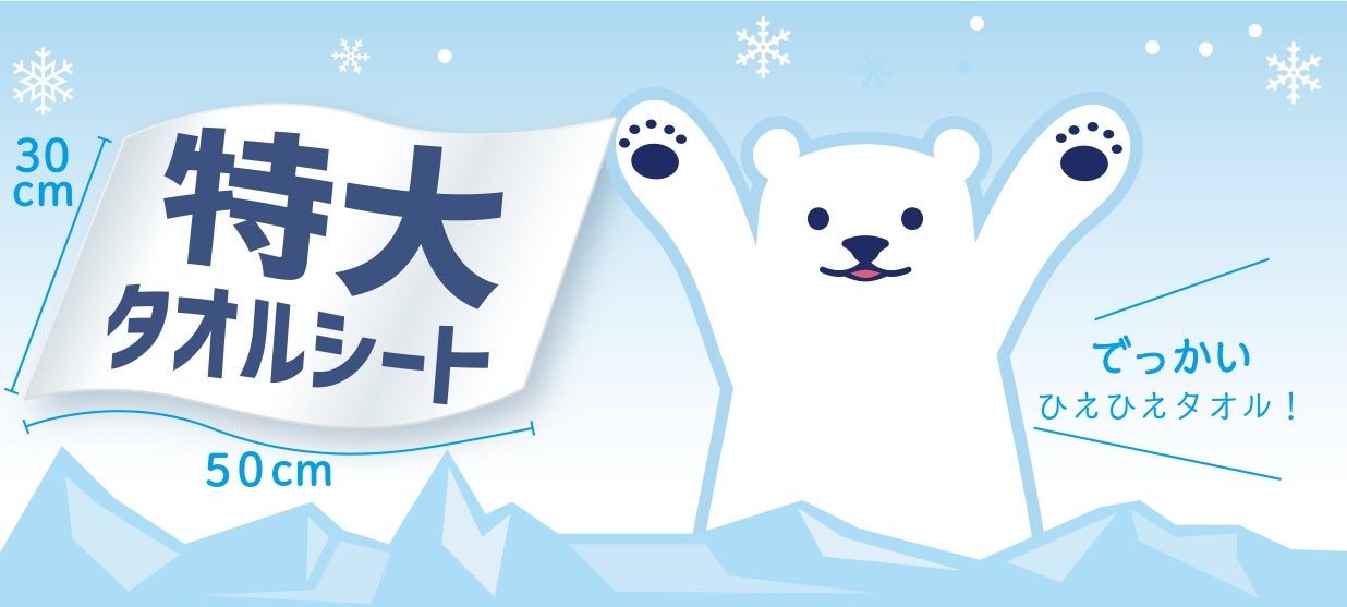 涼感アイテムとしてご愛顧頂いております「ひんやりふくだけシャワー」。2021年に発売後、大好評を得た「特大タオルシート」が今年も発売!