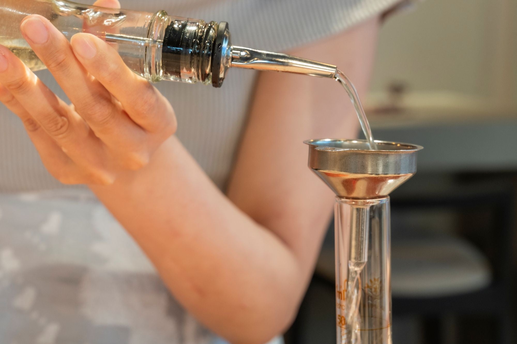 メスシリンダーや三角フラスコを器具として使い、まるで子どもの頃の理科の実験を思い出す中での体験は、みなさんが一番盛り上がる瞬間!2回の試作で、自分好みの「マイサケ」をおつくりいただけます。