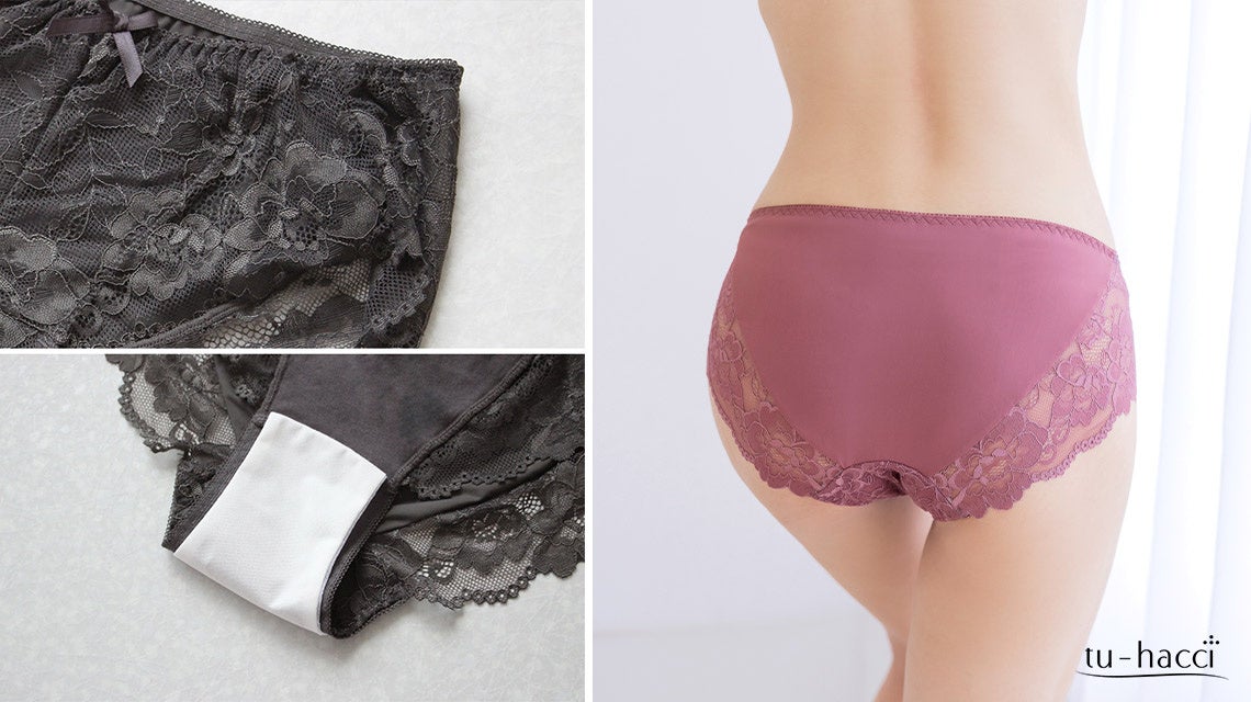 91%の⼥性が⽣理中の下着選びで悩みがあると回答。ブルーデイでも気分が上がるtu-hacciのサニタリーアイテムを紹介。
