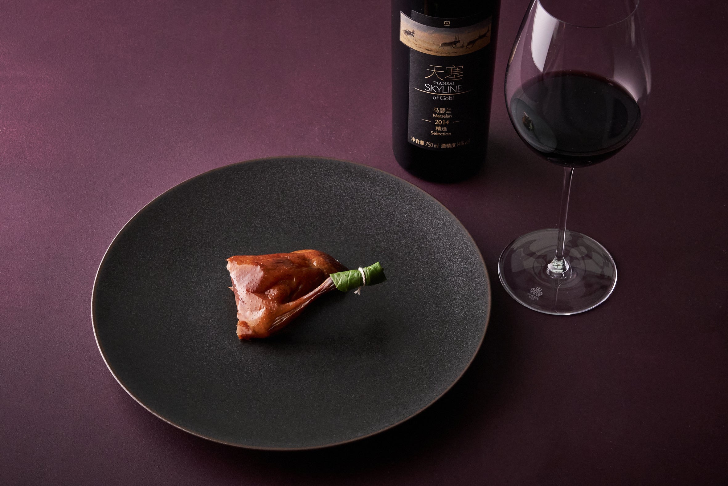 赤ワインのエキゾチックなスパイス香が、香り揚げのロースト香、オリエンタルスパイスと相乗して複雑な味わいを演出し、風味豊かな余韻を奏でます。鳩の風味と質感に、赤ワインのキメ細かなタンニンと熟成香が重なることで、見事な旨味と多重層な風味を感じさせてくれます。