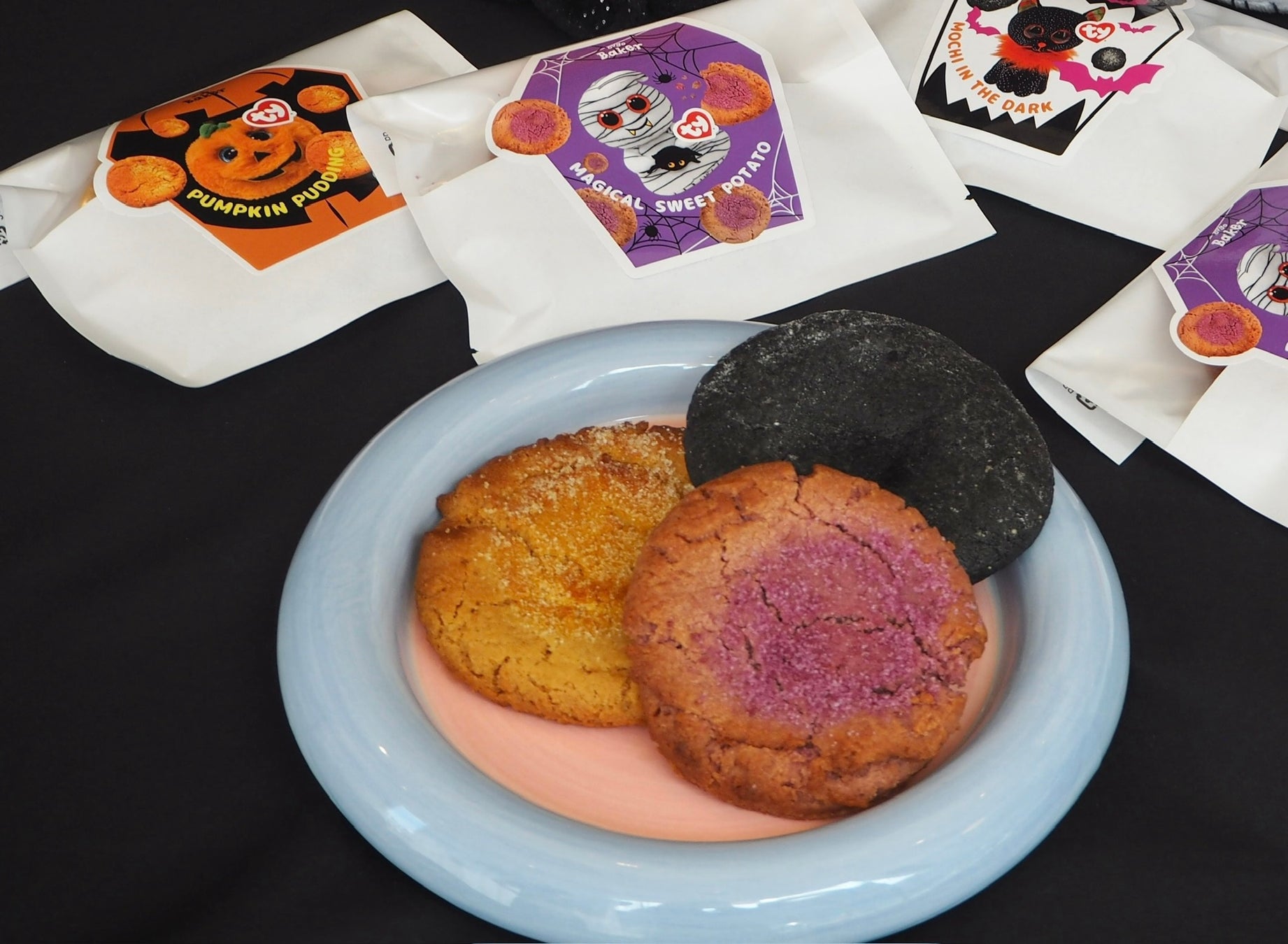 今回のコラボでは、人気のハロウィン限定フレーバーの個包装クッキーがTyキャラクターの限定デザインパッケージに変身。地球にも身体にもやさしいプラントベースレシピはそのままに、可愛い見た目と季節感をお届けします。ギフトにもぴったりなクッキー&Tyのぬいぐるみのセットボックスもご用意。