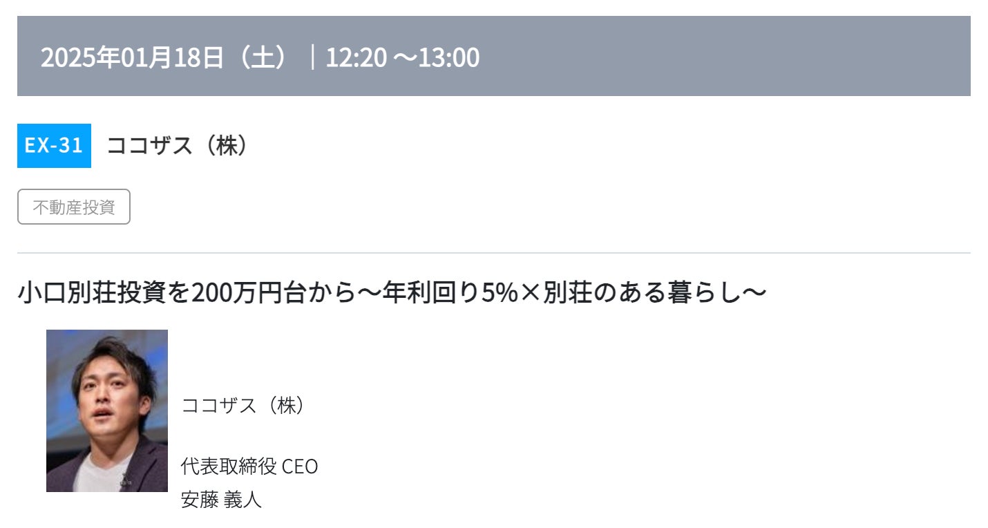 ココザス株式会社(以下、当社)は、2025年1月17日(金)から19日(日)まで、東京ビッグサイトにて開催される第8回資産運用EXPO【春】に出展いたします。