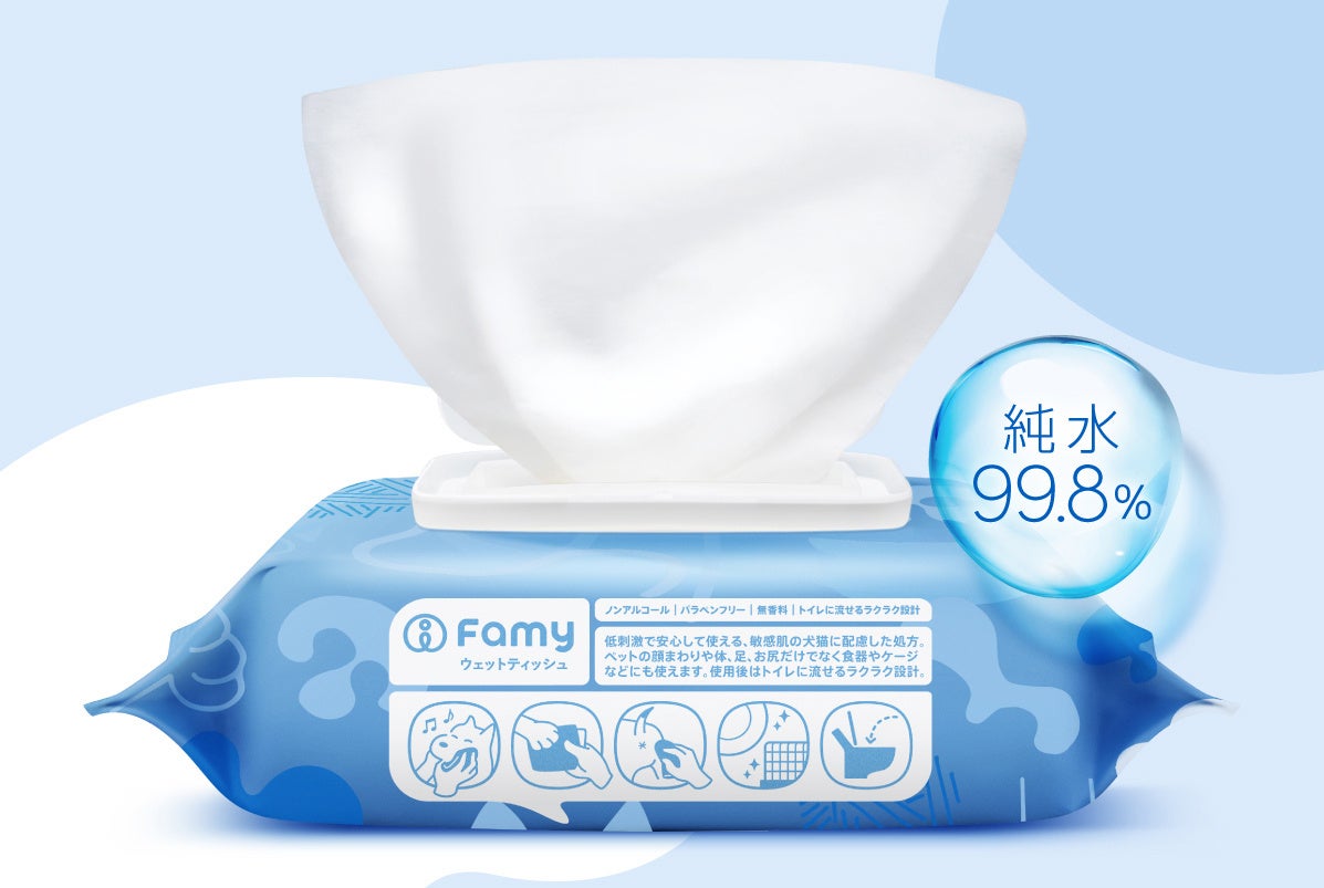 肌にも使い心地にも、やさしさを。Famyから“無添加低刺激”のペット用ウェットティッシュ新発売