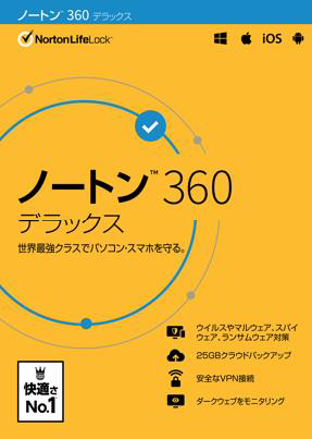ノートン 360デラックスは、パソコン、スマホ、タブレットなどのデバイスとWi-Fi通信等をオールインワンで守るセキュリティソフトです。詐欺サイトやウイルスなどサイバー攻撃の脅威を検知し、防御する他、インターネット利用時に通信内容を盗み見されないように暗号化するVPN機能を搭載。その他、お子様を守るための保護者機能、個人情報流出を検知するダークウェブモニタリング機能、パスワードを安全に管理するパスワードマネージャー機能など、消費者の皆様が、より快適かつ安全にインターネットを利用できるようになる機能を多数搭載しています。
