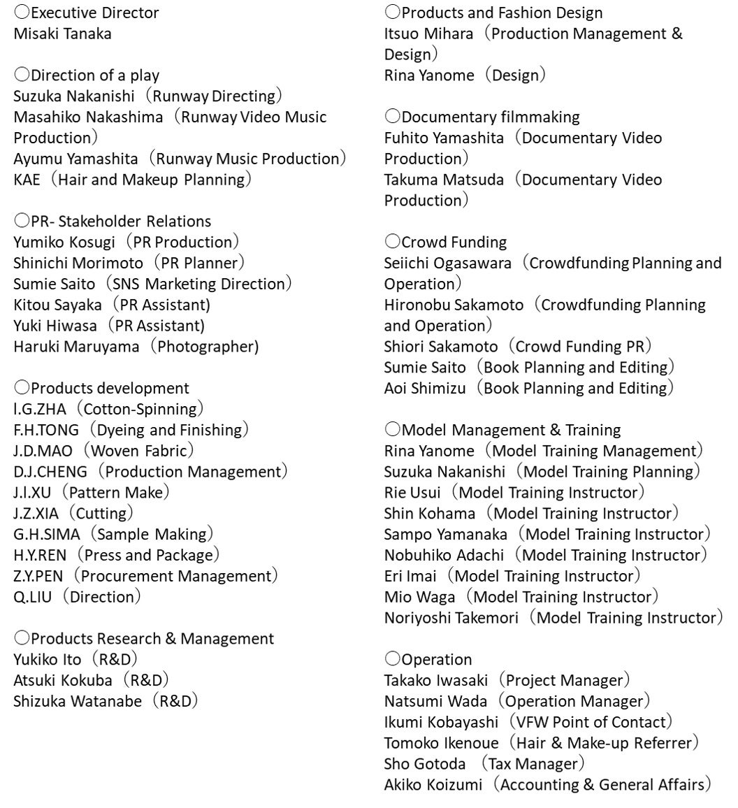 今回のVFWでの挑戦に、資金面やショー演出のアドバイス、ヘアメイクのプランニングや、撮影会場のご提供、意思疎通支援アプリのご提供、コレクション用素材のご提供など多くの企業にご賛同を頂きました。