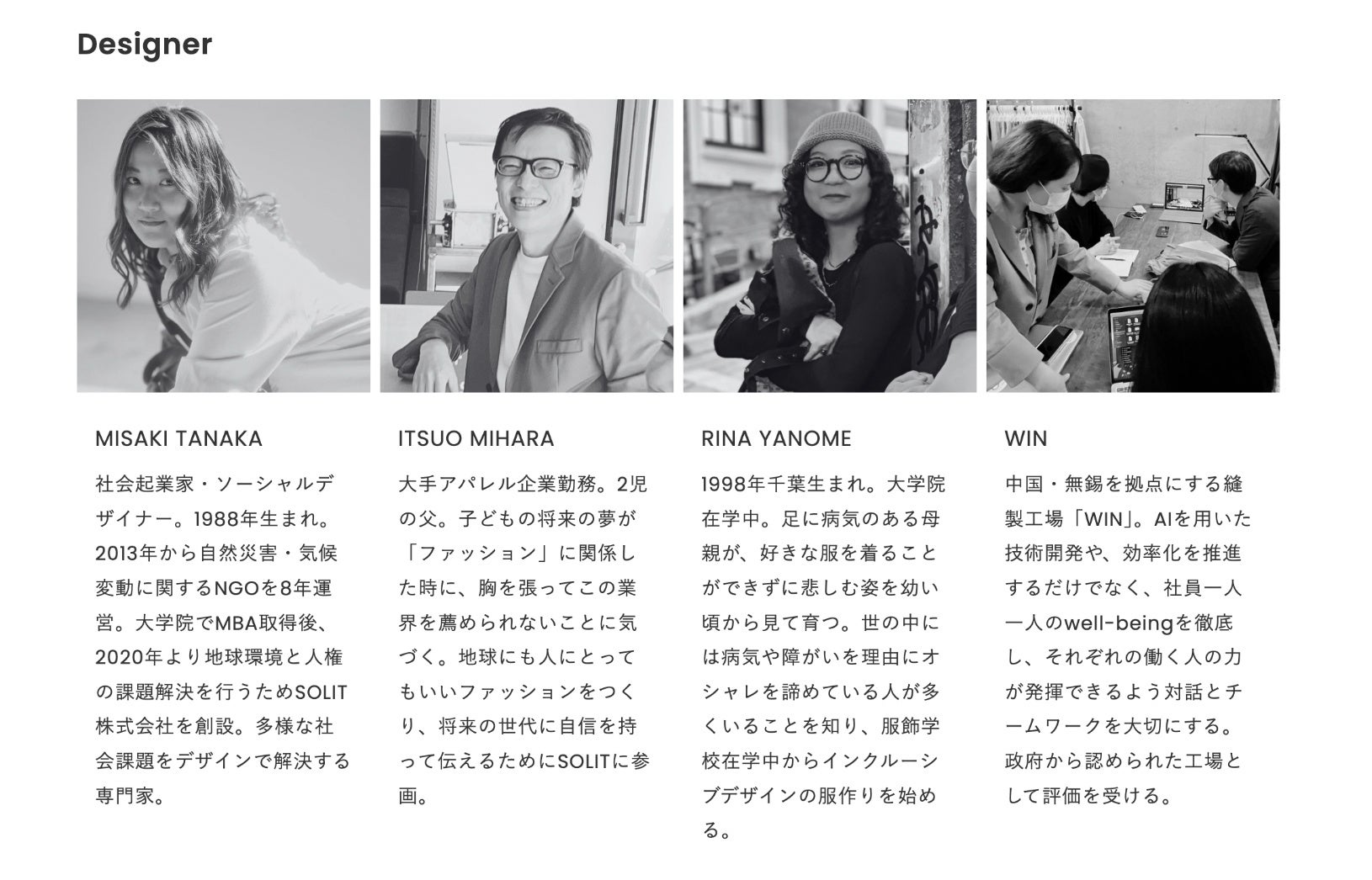SOLIT株式会社は、誰もが「違い」をありのままに受け入れ、健全に共存できる「All inclusive経済圏」の実現を目指し、インクルーシブデザインを用いたデザイン開発を行う企業です。第一弾として、障がい・セクシュアリティ・体型などに関係なく、着脱しやすく、部位ごとに好きなサイズや丈を選ぶことができるセミパーソナライズのファッションブランド「SOLIT!」を開発。世界三大デザインアワード「iF DESIGN AWARD 2022」にて最優秀賞GOLDを受賞。