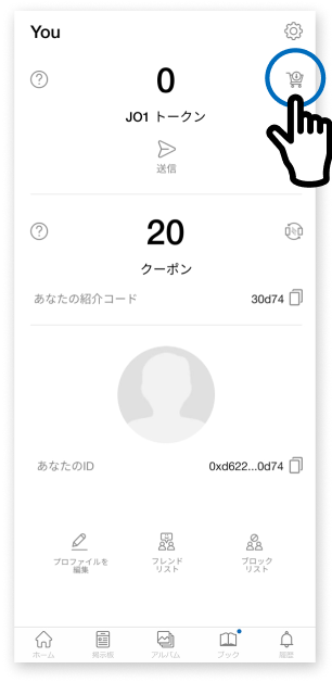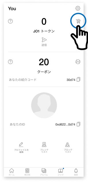 専用アプリにて、JO1トークンを購入し、購入したJO1トークンで、デジタルメッセージトレーディングカードの購入や、マーケット内で中古のJO1カードの売買トレードをすることこができます。