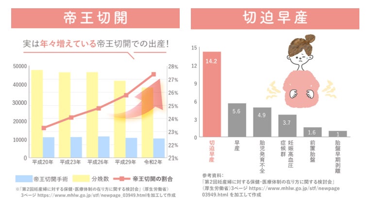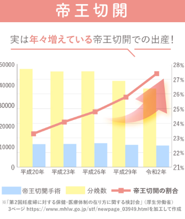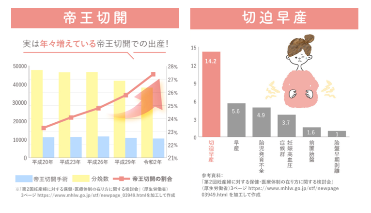 厚生労働省によると、帝王切開での出産は年々増えており、出産する4人に1人が帝王切開で出産をしているといいます。また、早産になりそうな状態とされる切迫早産は、妊娠中の6~7人に1人が経験しており珍しいことではありません。※3