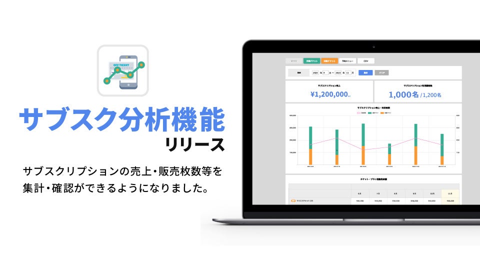 この度、BeautyMeritのサブスク機能を利用している店舗様でサブスク売上等のデータ分析ができるようになりました。本機能のリリースにより、サブスクの売上や利用顧客数の確認ができるようになります。チケット販売枚数の管理はもちろん、解約件数や継続期間などの集計ができるようになる為、これらのデータを用いて店舗のメニュー・クーポン作成や料金改定の際の参考値としてご活用していただけます。