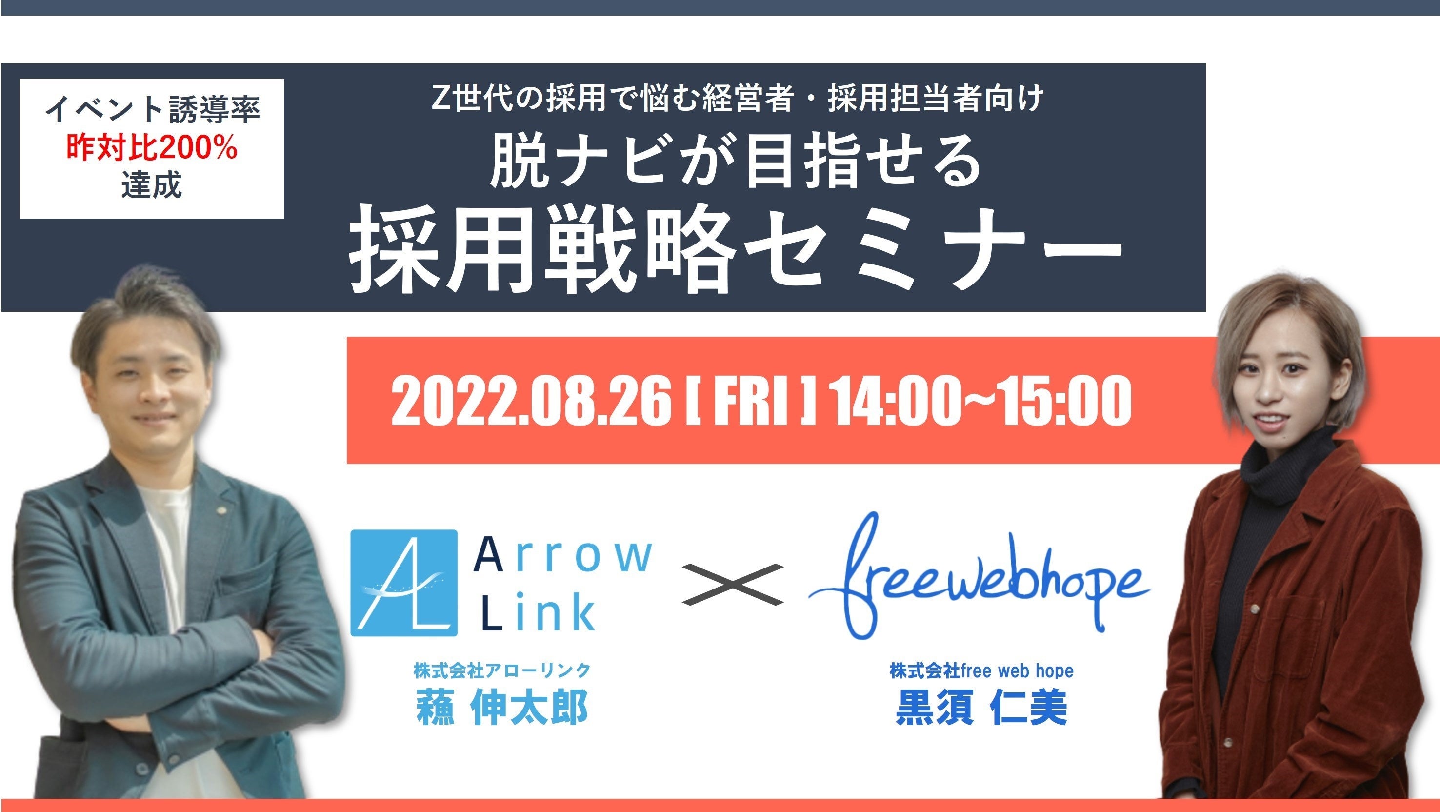 株式会社アローリンク(本社:兵庫県神戸市、代表取締役:蓬莱和真)と、株式会社free web hope(本社:東京都千代田区、代表者:相原 祐樹)は、8/26(金)に無料オンラインミナーを開催します。「広告媒体に頼らずに採用を成功させる方法」と題し、"LINEを活用した採用"について詳しくお伝えします。
