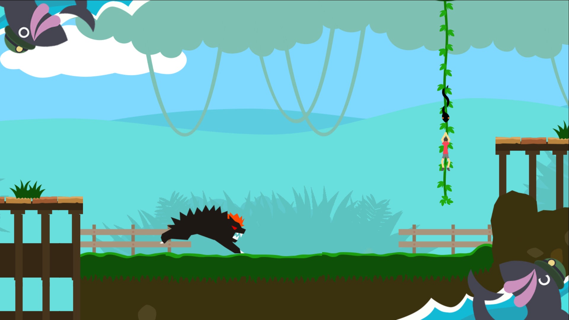シンプルな操作で、次々と襲いかかるピンチをあなたのひらめきやアクションテクニックを駆使して切り抜け、謎の島から脱出を目指す“絶叫系2D横スクロールアクション”ゲームです!