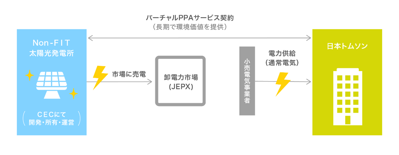 ベアリングおよび関連機器の製造・販売を行う日本トムソン株式会社(代表取締役社長:宮地茂樹、以下「日本トムソン」)と脱炭素経営企業、RE100参加企業等のお客様に対して脱炭素ソリューションをご提供する株式会社クリーンエナジーコネクト(代表取締役:内田鉄平、以下「クリーンエナジーコネクト」)は、国内ベアリング業界初となるバーチャルPPAサービス契約(Power Purchase Agreement:電力購入契約)を締結しました。