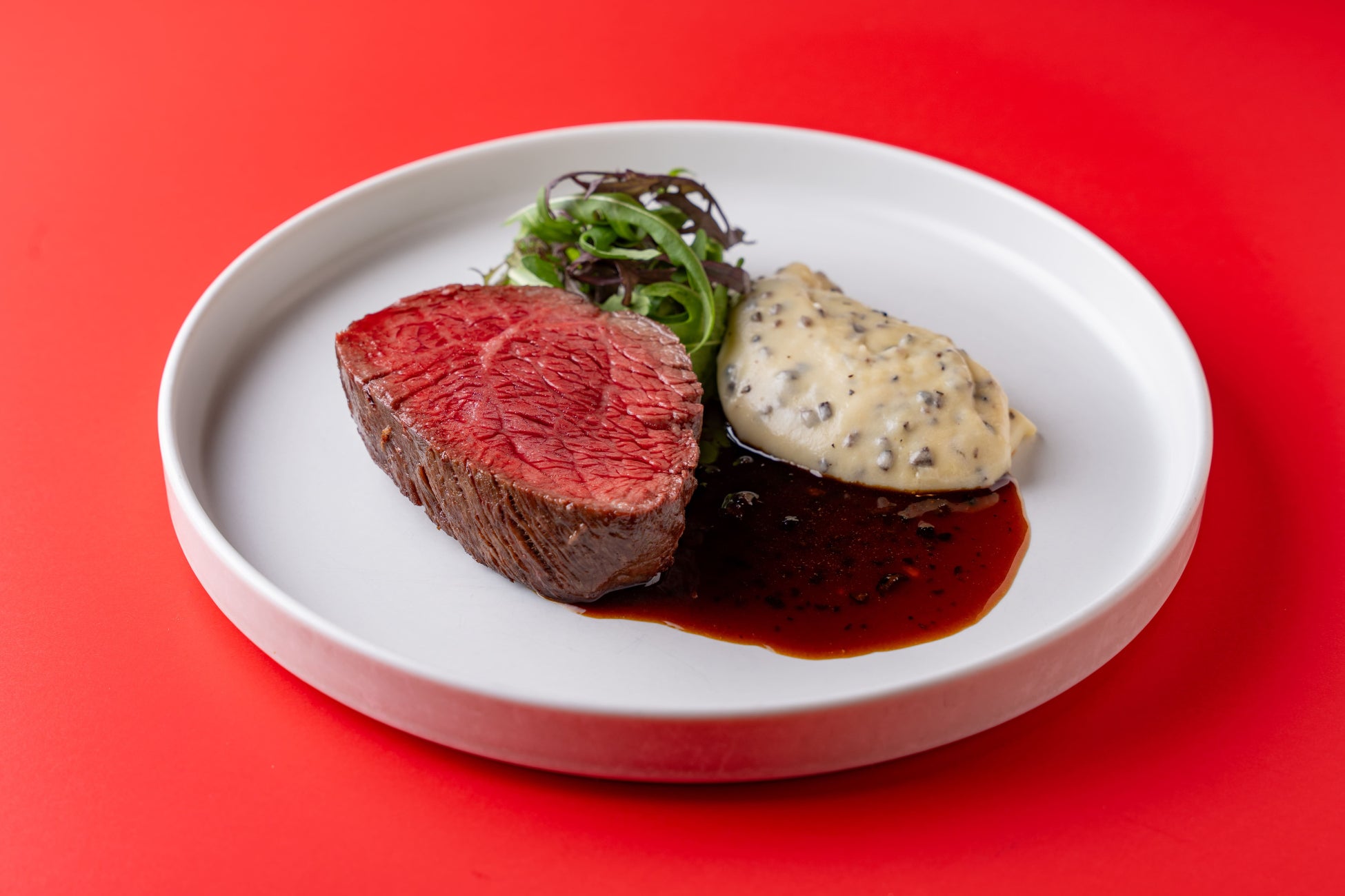 上質な飛騨牛をゆっくりとローストし、贅沢に黒トリュフを使用した香り高いソースで仕上げた一皿。