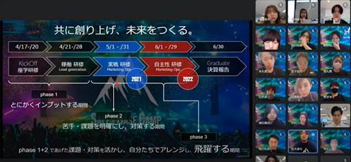 最終日には、この新設会社が活動成果をもとにP/L表現し、グループ経営メンバーや各事業会社の管理職らへ決算報告をする。というイベントで締め括ります。毎年、約600名がオンラインに参加し新卒の報告を聞き、各社へフィードバックします。