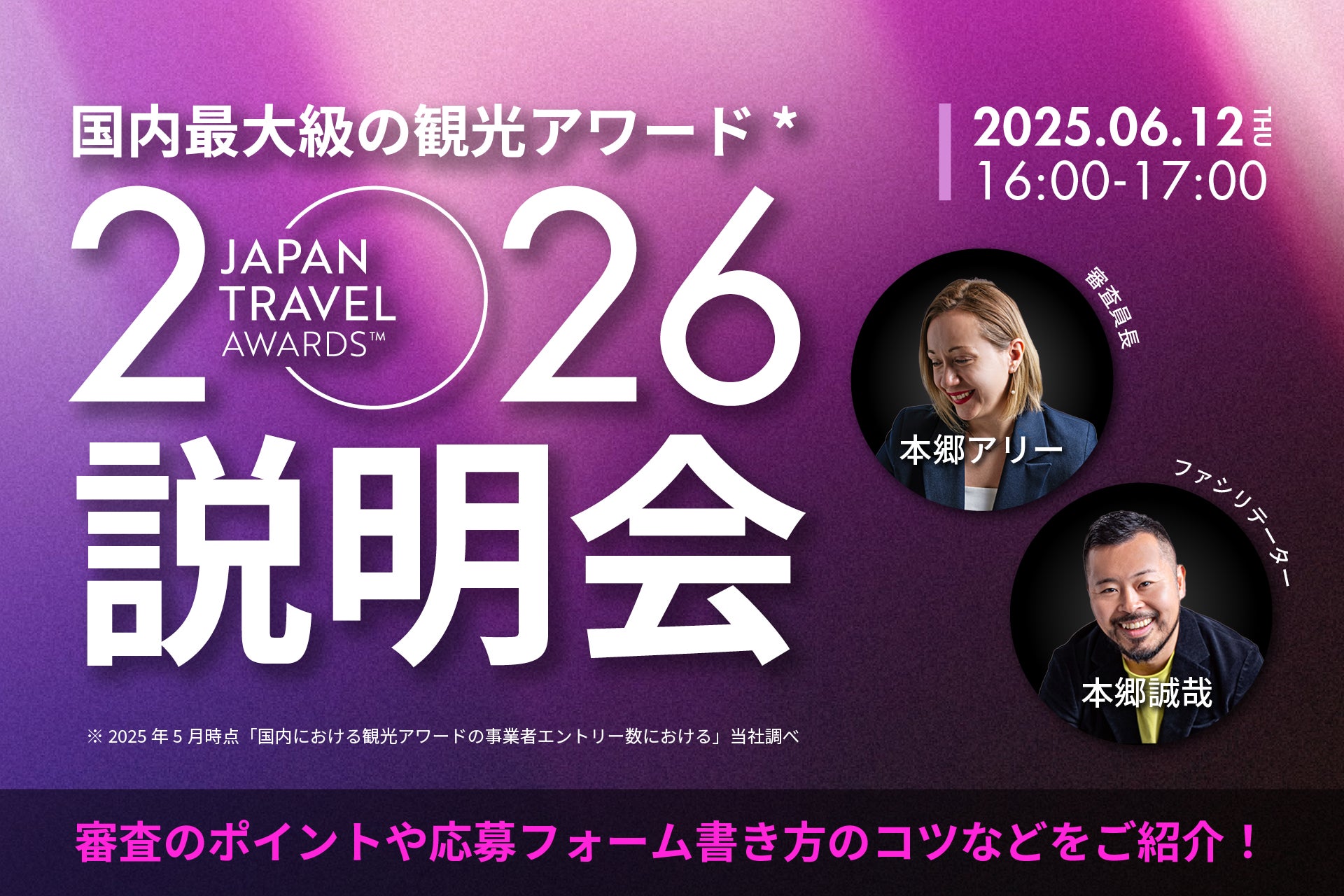 なお「ジャパントラベルアワード2026」は、6月30日(月)までエントリーを受付中!
